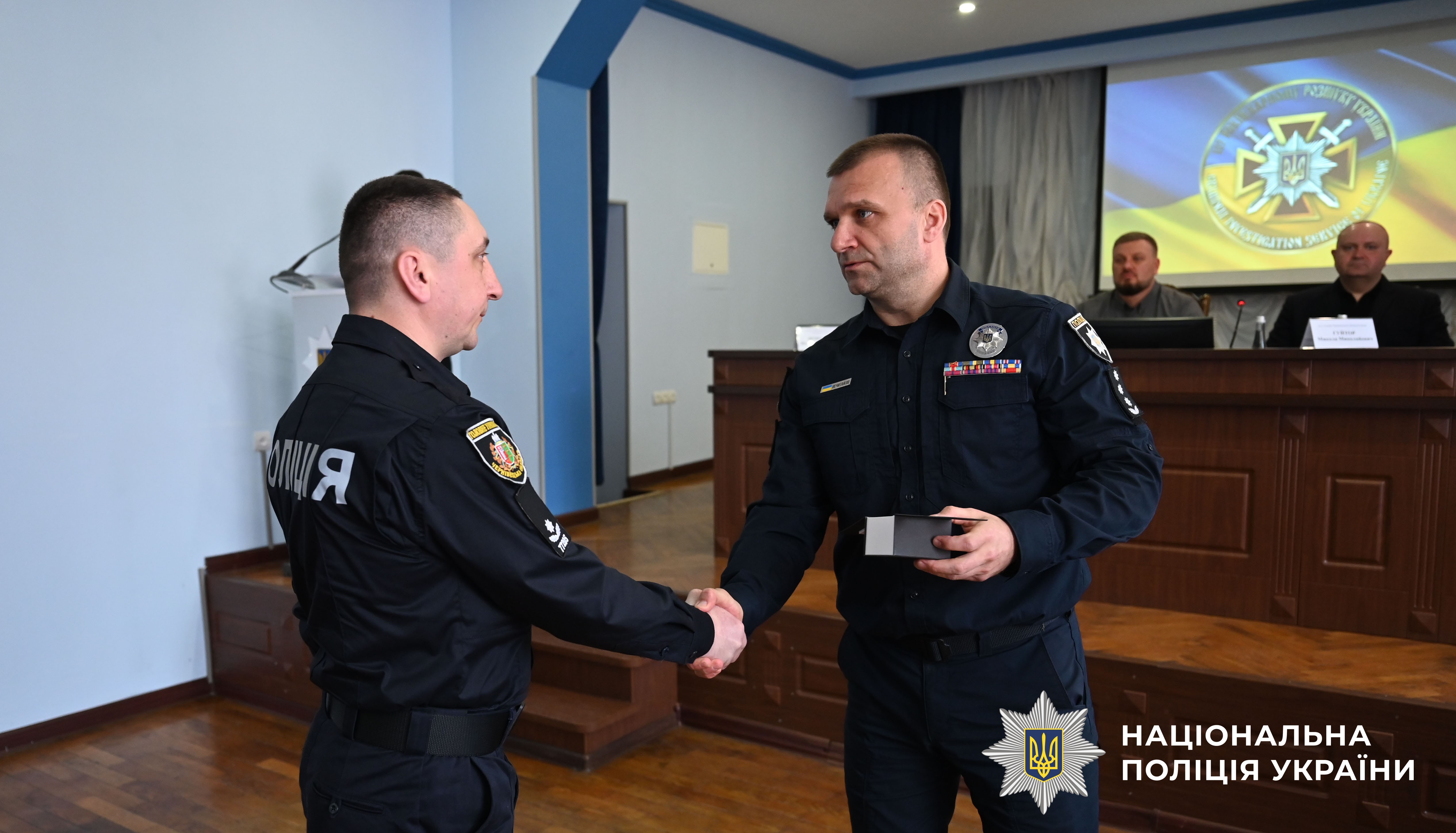 Полковник поліції Віктор Нечитайло нагородив оперативників відзнаками, подяками, медалями та цінними подарунками НПУ, ГУНП та Чернівецької міської ради, а також вручив погони з присвоєнням чергових спеціальних звань.