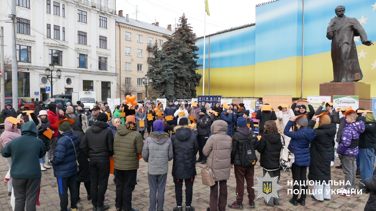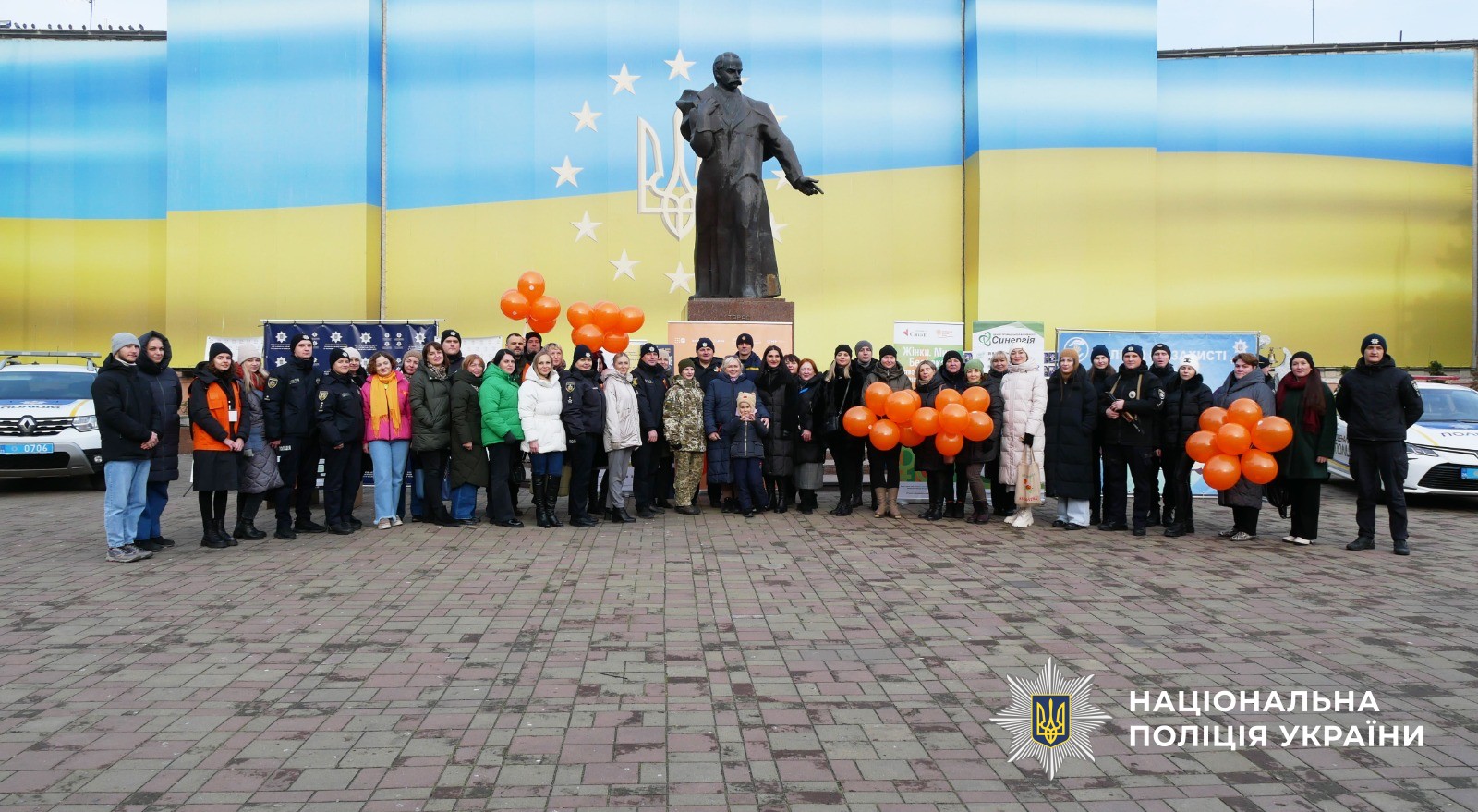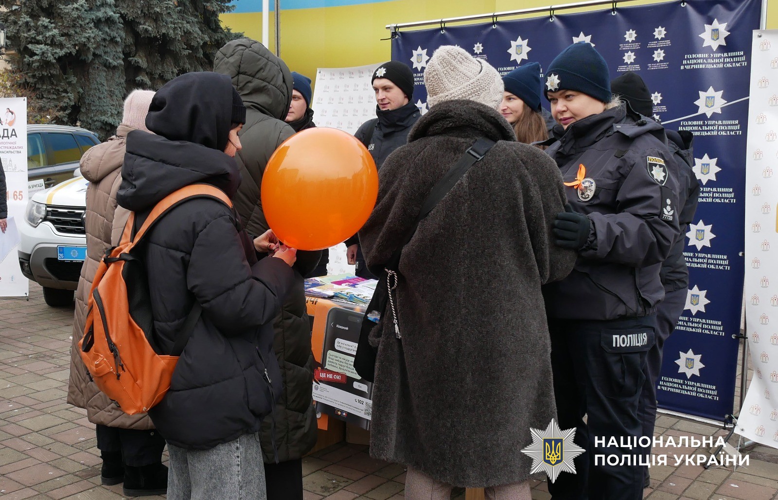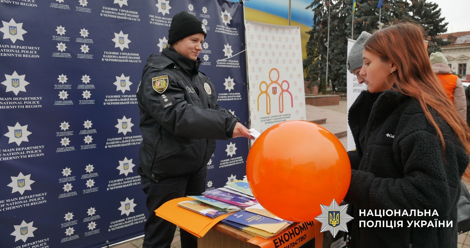 Співробітники поліції Чернівецької області спільно з представниками міської ради роздавали перехожим тематично-інформаційні буклети «це не Ок» та яскраво-помаранчеві повітряні кульки, що символізують підтримку боротьби з насильством.