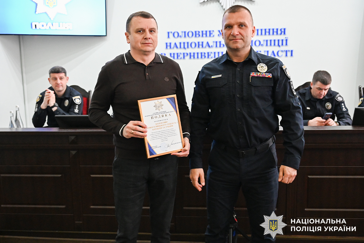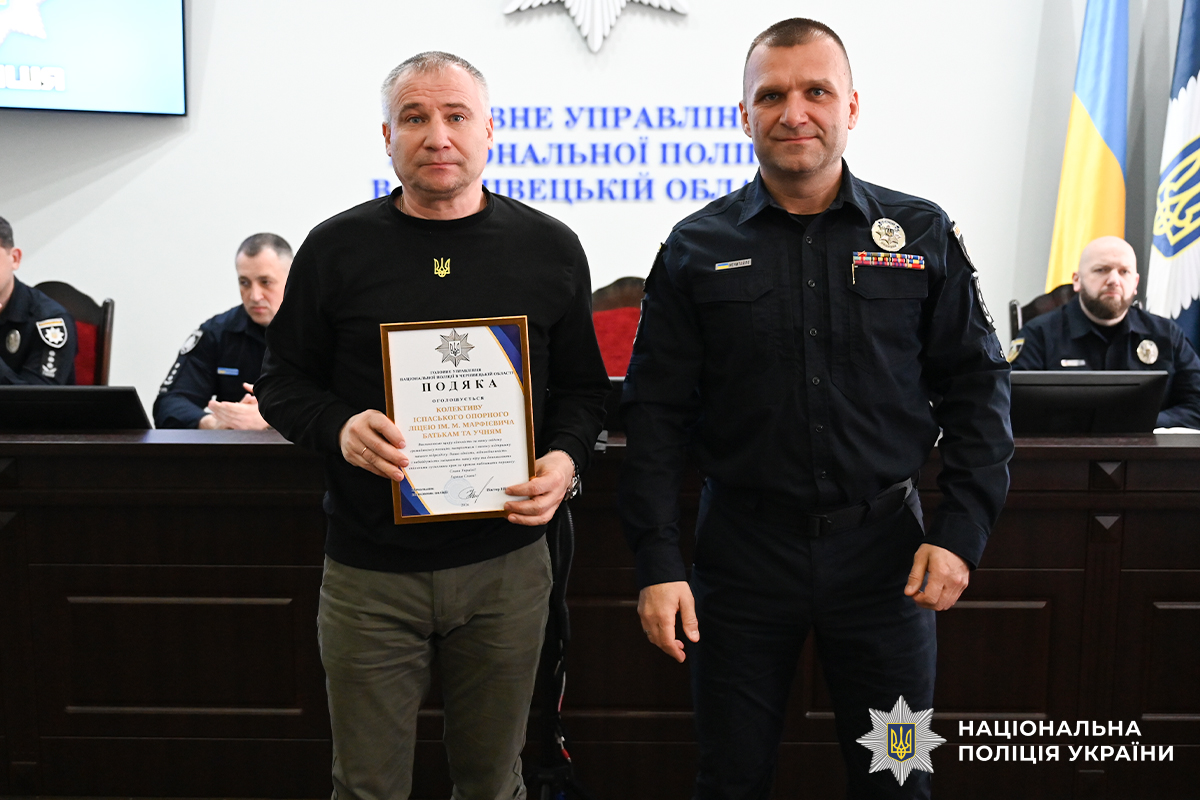 Сьогодні, 8 квітня, начальник поліції Буковини Віктор Нечитайло провів нараду, під час якої відзначив подяками Головного управління Національної поліції в Чернівецькій області колективи закладів загальної середньої освіти області, які вже не вперше долучаються до підтримки обороноздатності батальйону поліції особливого призначення (стрілецький). Так, цього разу для потреб бійців, котрі продовжують відстоювати свободу України на фронті, вчителі, учні та батьки організували збір коштів і закупили необхідні дороговартісні квадрокоптер та зарядну станцію.