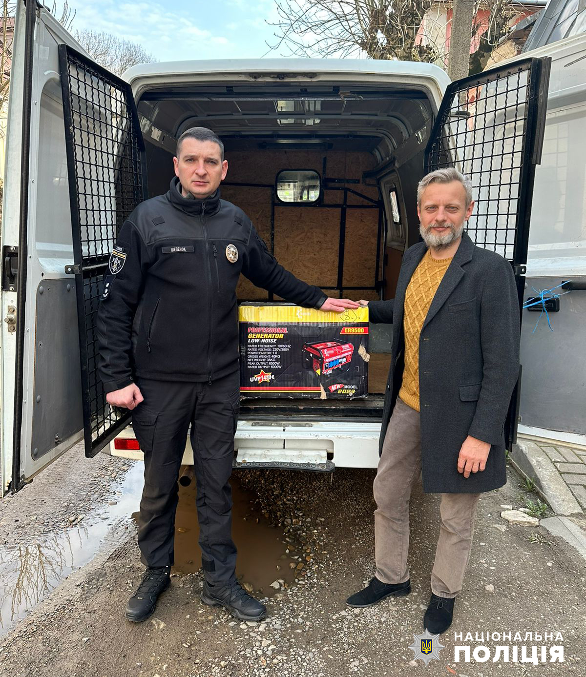 Начальник Управління головної інспекції ГУНП в Чернівецькій області Володимир Шепенюк разом із меценатами ГО «Справа Кольпінга в Україні» придбали та передали на Херсонщину електрогенератор.