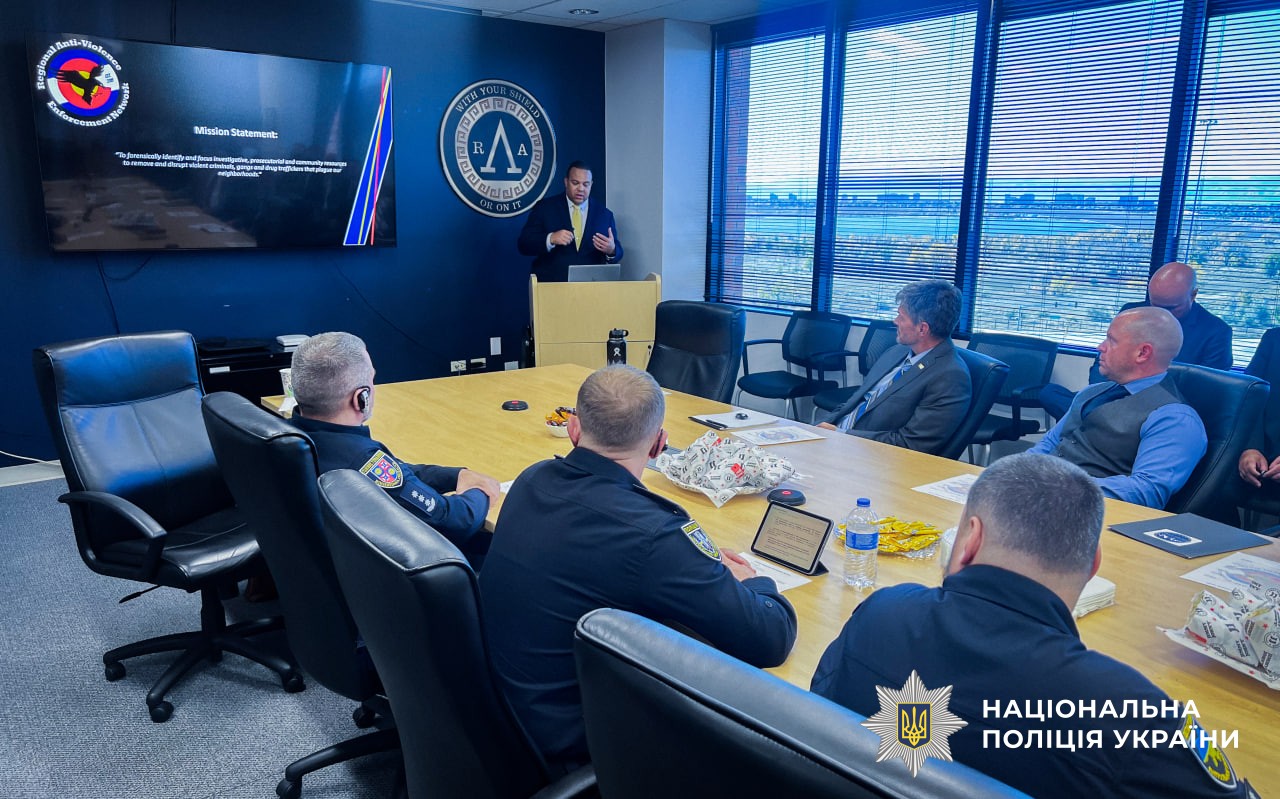 Під час зустрічі обговорювали методи аналітичної роботи, використання оперативних баз даних (NIBIN) та систему GETS, яка допомагає класифікувати злочини за географічними, часовими та соціальними критеріями.