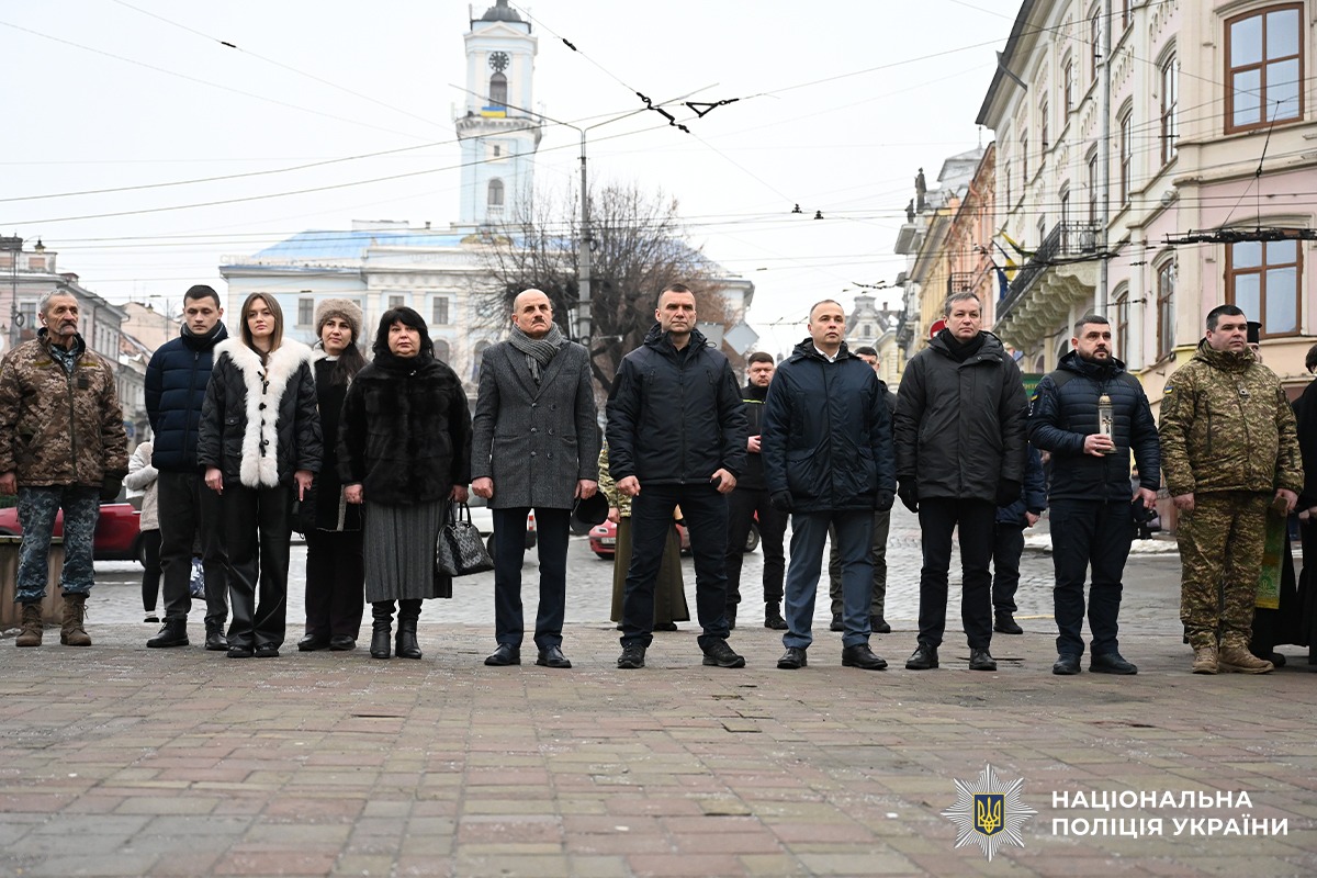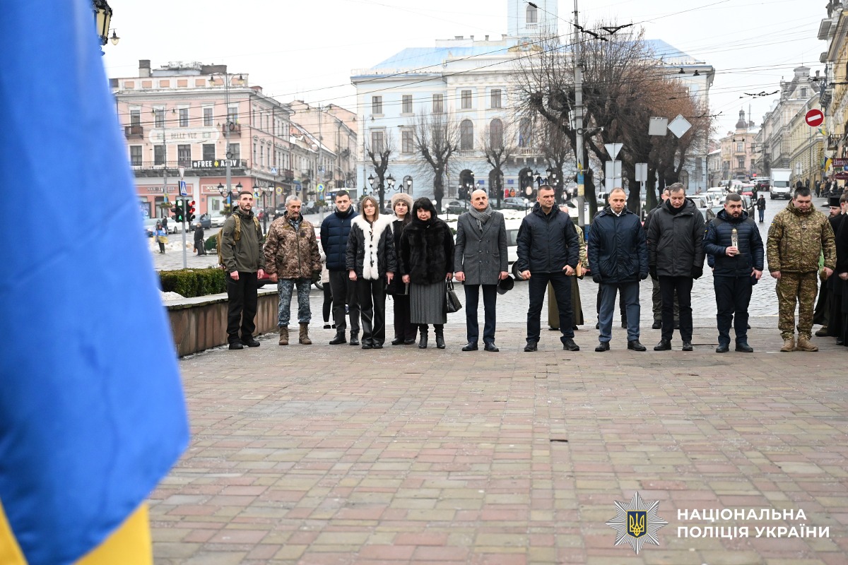 Сьогодні, 29 січня, на Центральній площі Чернівців керівництво поліції області спільно з представниками місцевої влади, громадських організацій та жителями міста вшанували героїзм українців у легендарному бою під Крутами 1918 року — символі боротьби за майбутнє України. Учасники заходу поклали квіти та запалили лампадки біля пам’ятної Стели загиблим у російсько-українській війні.