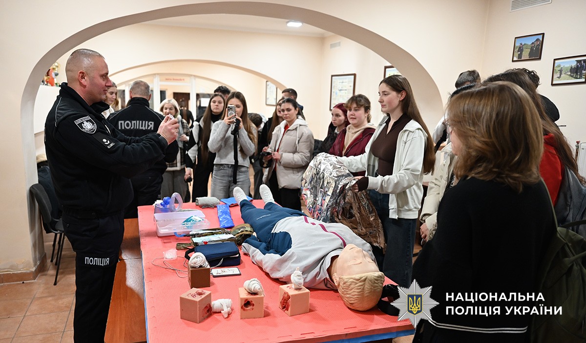 Юних гостей також ознайомили з особливостями роботи криміналістів та бійців спецпідрозділу КОРД. Поліцейські розповіли про основні завдання цих підрозділів, продемонстрували спеціальне обладнання. Співробітники Тренінгового центру провели практичне заняття із надання домедичної допомоги. Учні дізналися, як правильно діяти у разі невідкладної ситуації, як оцінити стан постраждалого, викликати допомогу та застосувати базові навички порятунку життя.