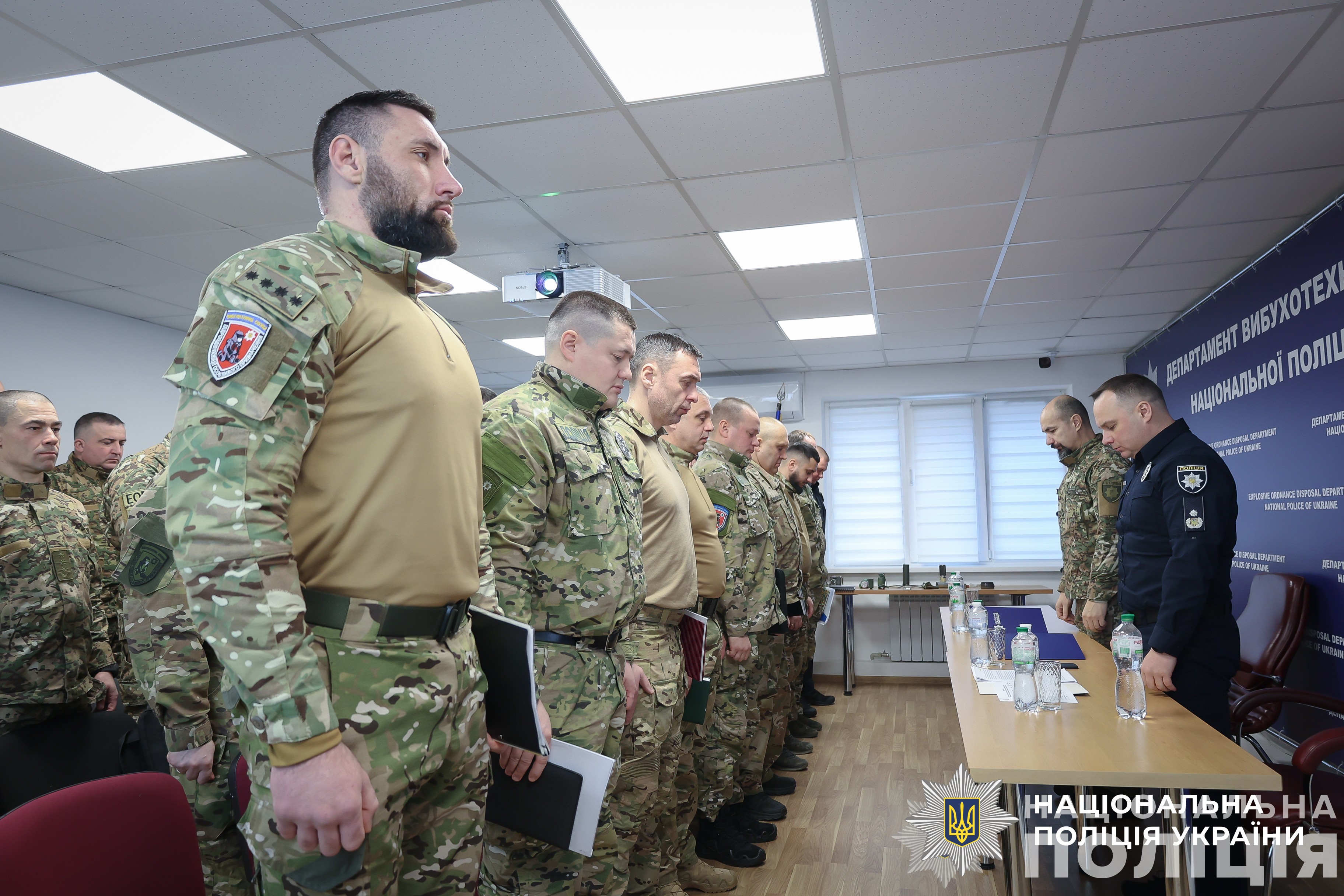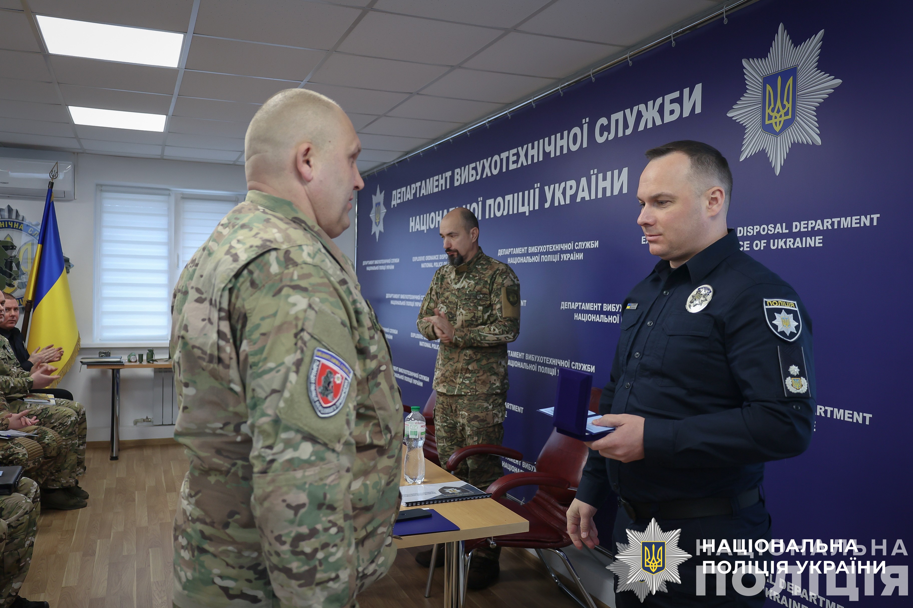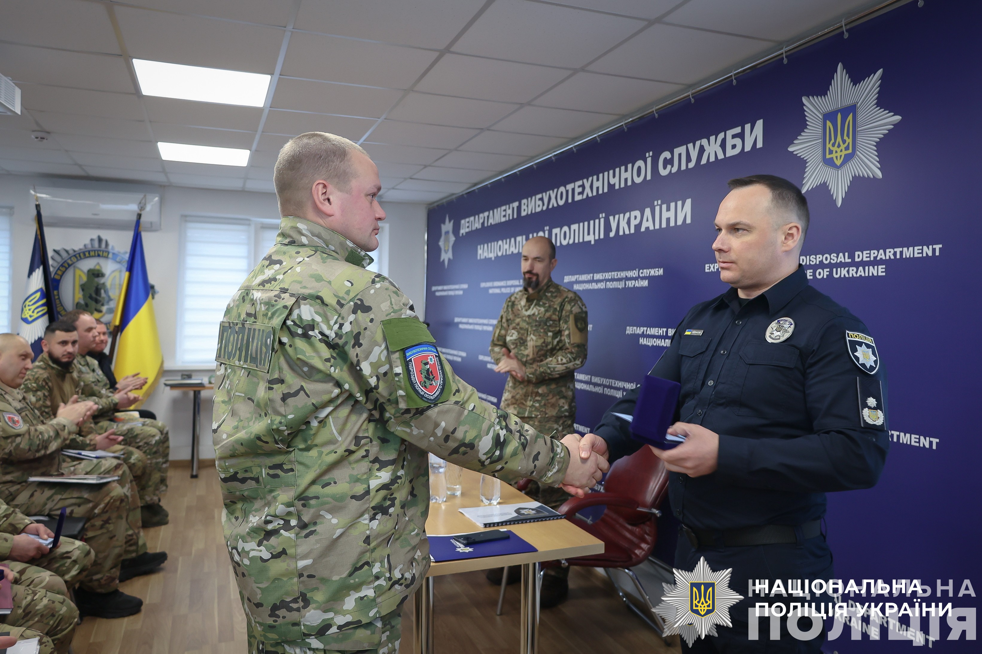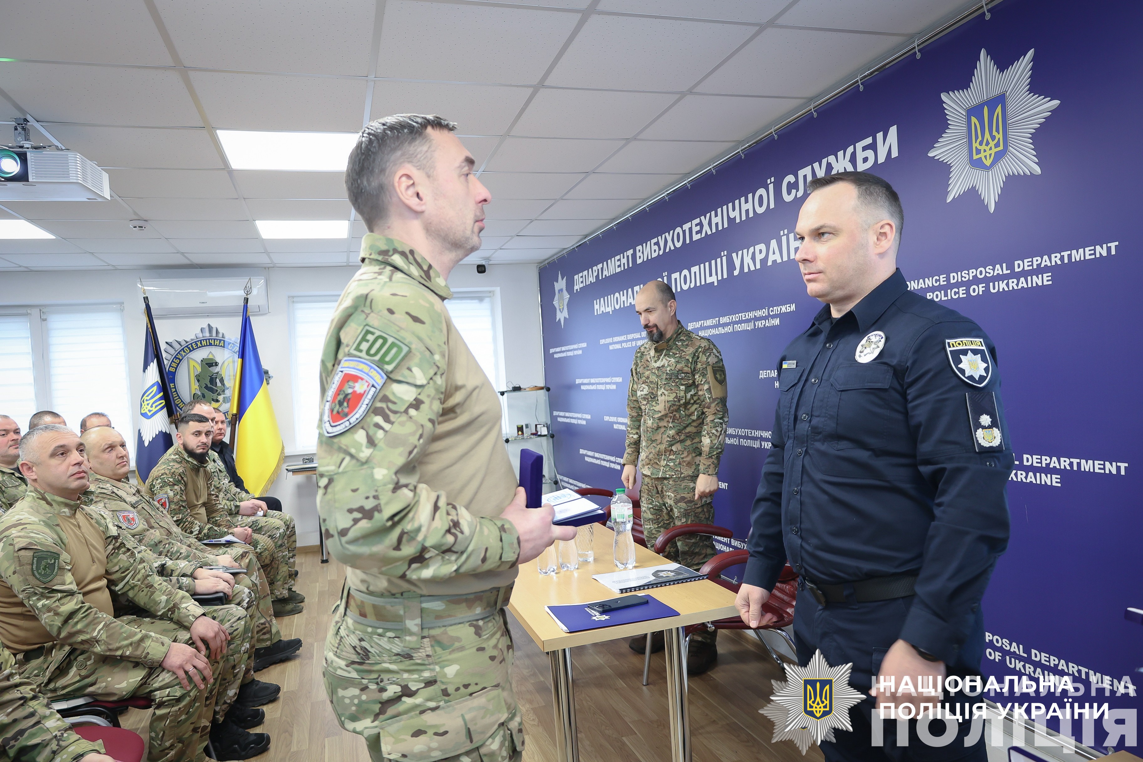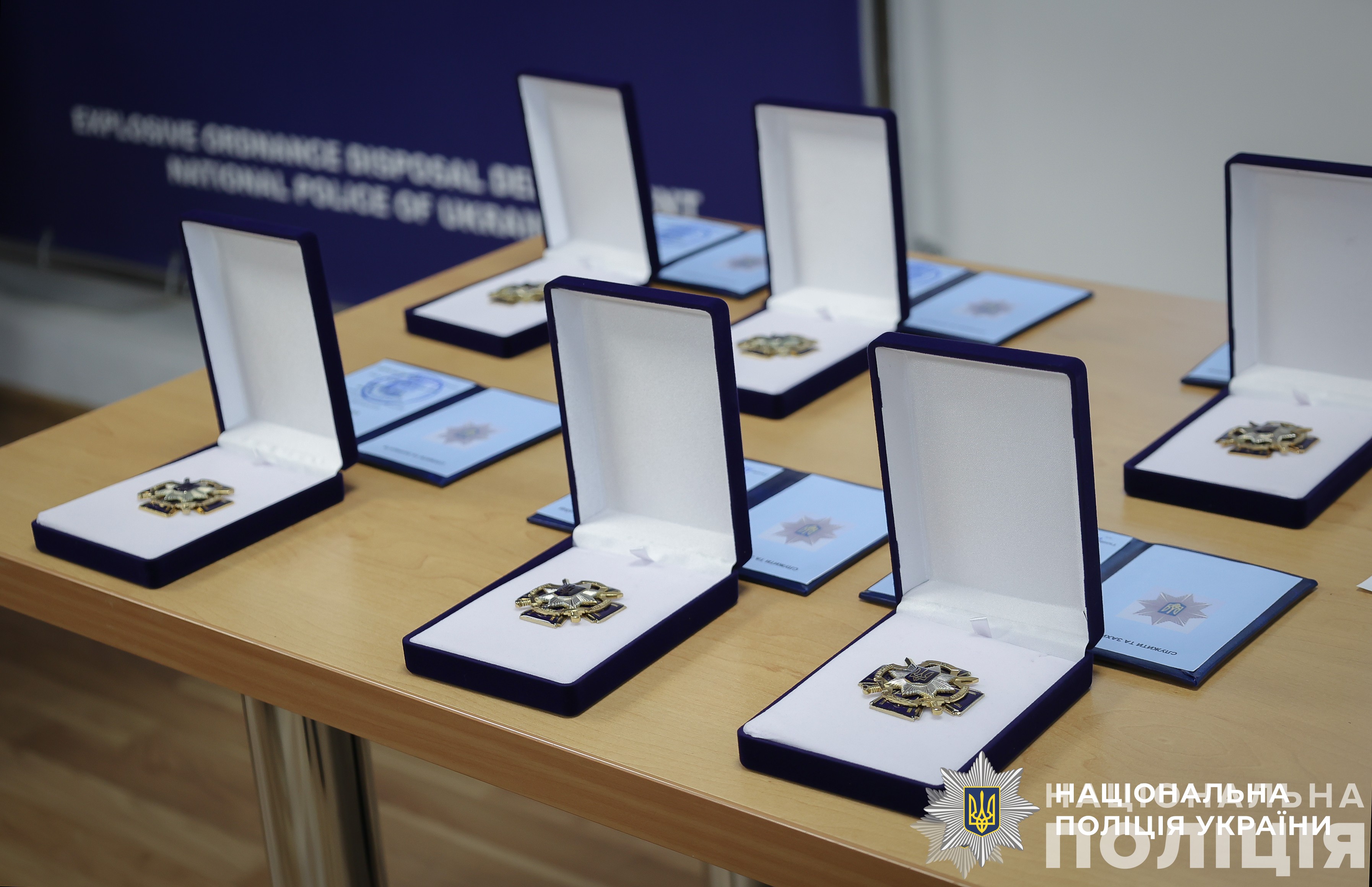 Голова Нацполіції подякував вибухотехнікам за віддану службу та вручив декільком відзнаки Нацполіції.