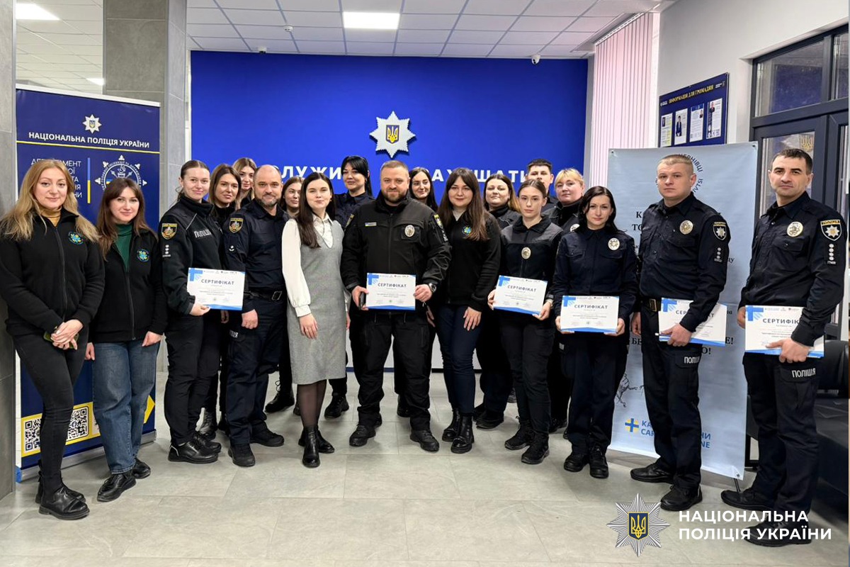 Окрему увагу було приділено аналізу практичних кейсів, що дозволило відпрацювати отримані знання в умовах, максимально наближених до реальних ситуацій. Поліцейські ознайомилися з міжнародними стандартами у сфері захисту прав людини, національним законодавством та механізмами міжвідомчої взаємодії з соціальними службами, громадськими організаціями й іншими суб’єктами, які забезпечують підтримку та реабілітацію постраждалих осіб. По завершенню всі учасники отримали сертифікати, що підтверджують успішне проходження навчання.