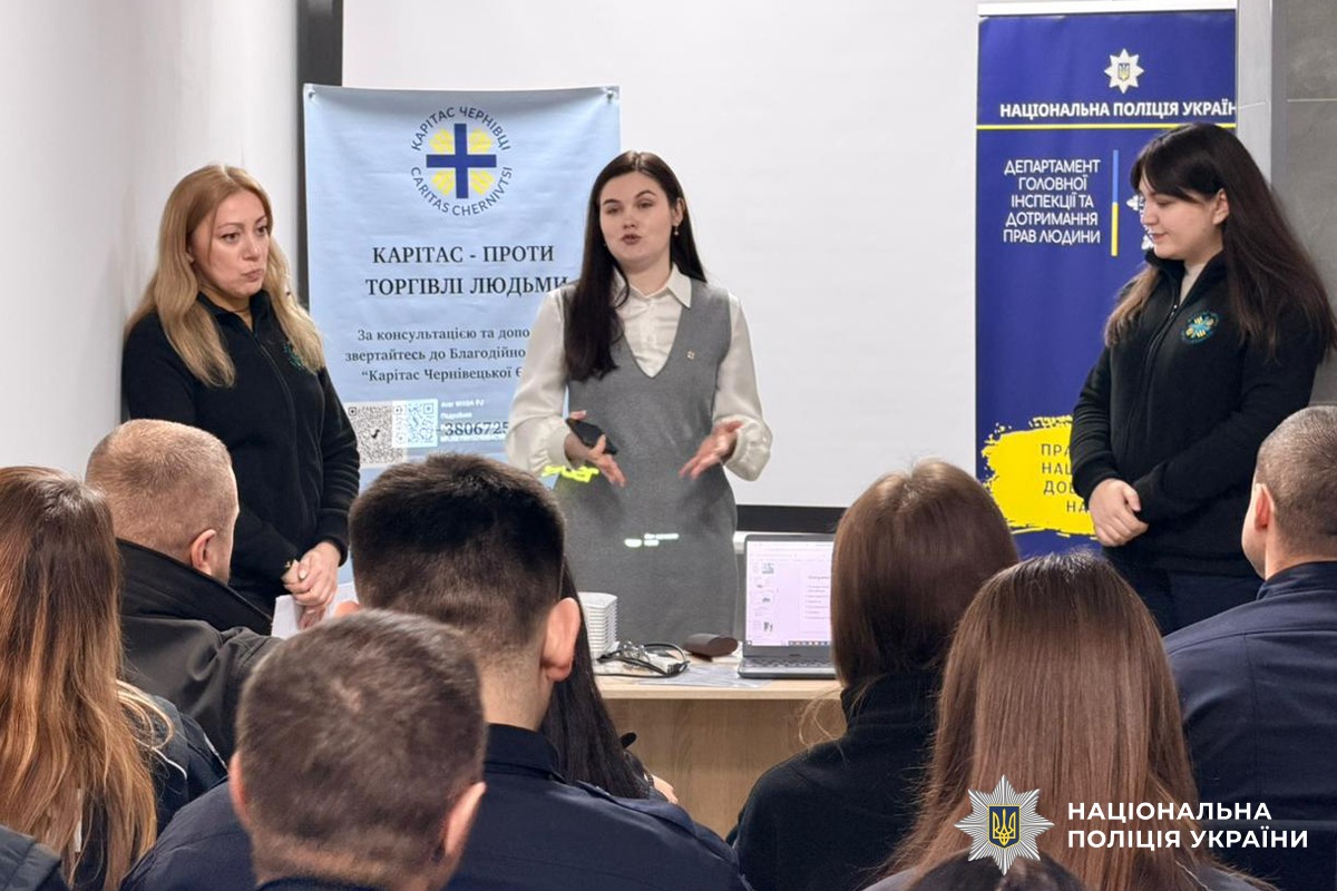 Сьогодні, 27 лютого, за ініціативи Міжнародної благодійної організації «Карітас України» у співпраці з керівництвом Чернівецького районного управління поліції області для співробітників різних підрозділів поліції Буковини провели тренінг на тему: «Ідентифікація осіб, які постраждали від торгівлі людьми: практичні інструменти для працівників поліції».