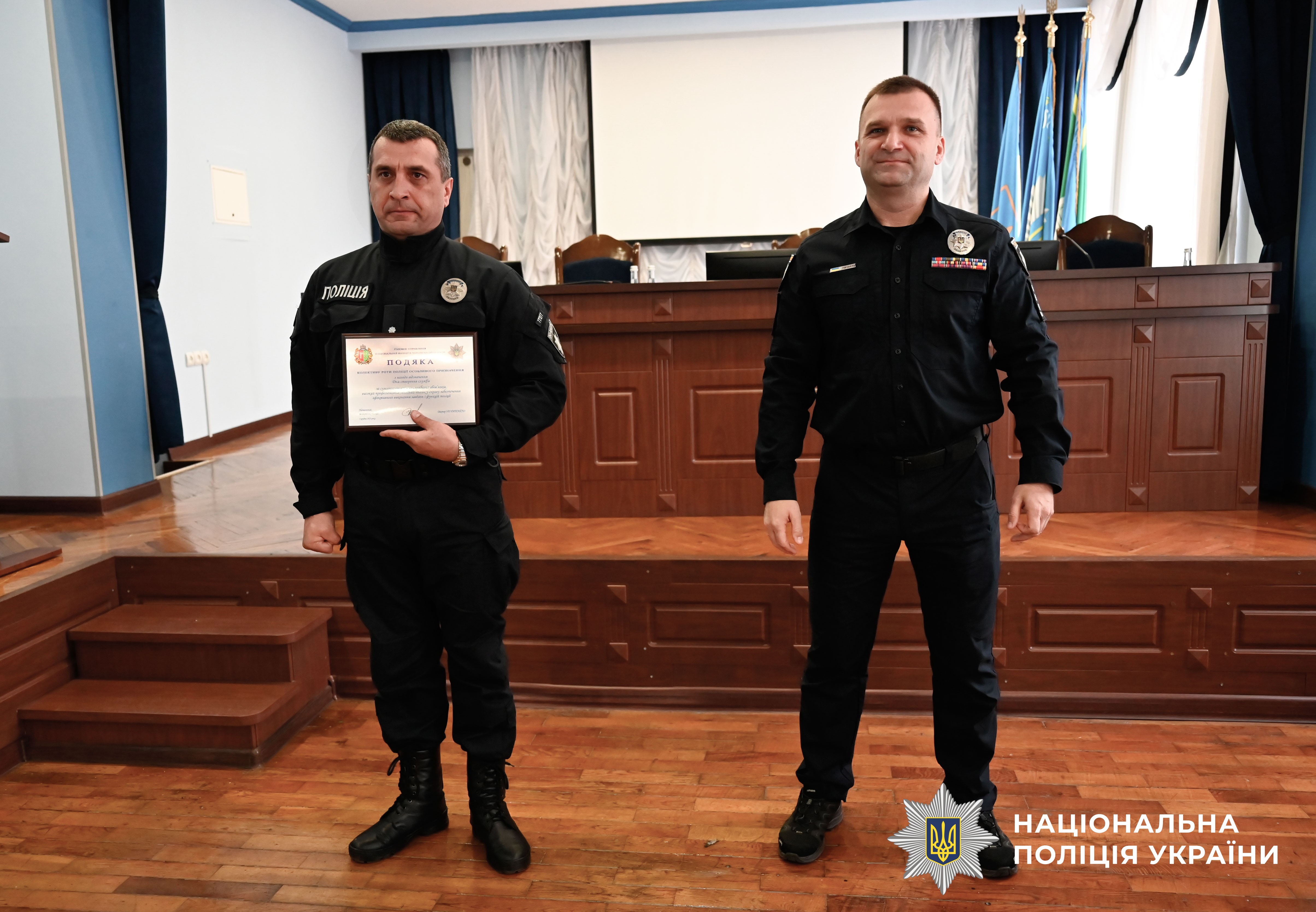 – З перших днів війни на ваші плечі лягли обов’язки щодо оборони нашої держави у складі зведених загонів Сил оборони і безпеки України. Ви – чесні, відповідальні та мужні працівники, які готові до виконання будь-якого службового завдання чи на передовій, чи тут, на місці. Ціную ваш професіоналізм і патріотизм у такий нелегкий для нашої країни час. Впевнений, що разом ми переможемо і виженемо ворога з нашої рідної землі. Дякуємо нашим захисникам і захисницям!– сказав полковник поліції Віктор Нечитайло.