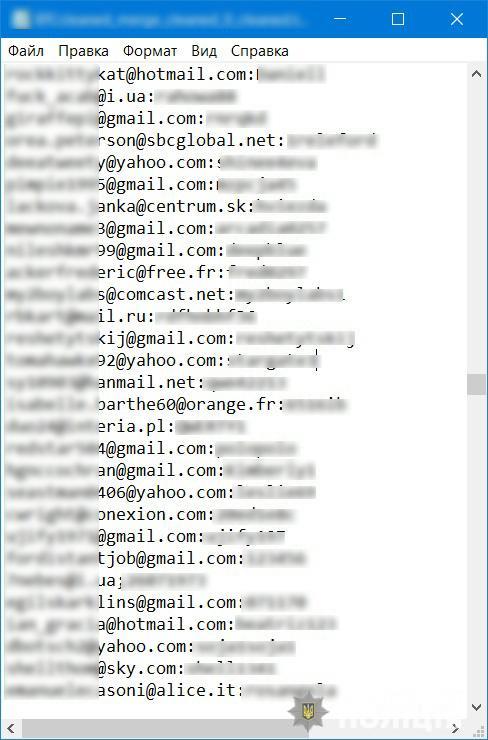 Під час попереднього огляду спеціалістами комп’ютерної техніки, було виявлено велику кількість скомпрометованих облікових записів користувачів Інтернет-сервісу ʺAmazonʺ, ігрового сервісу ʺSteamʺ, поштових сервісів ʺi.uaʺ, ʺukr.netʺ, ʺgmailʺ та інших облікових записів автоматизованих систем.