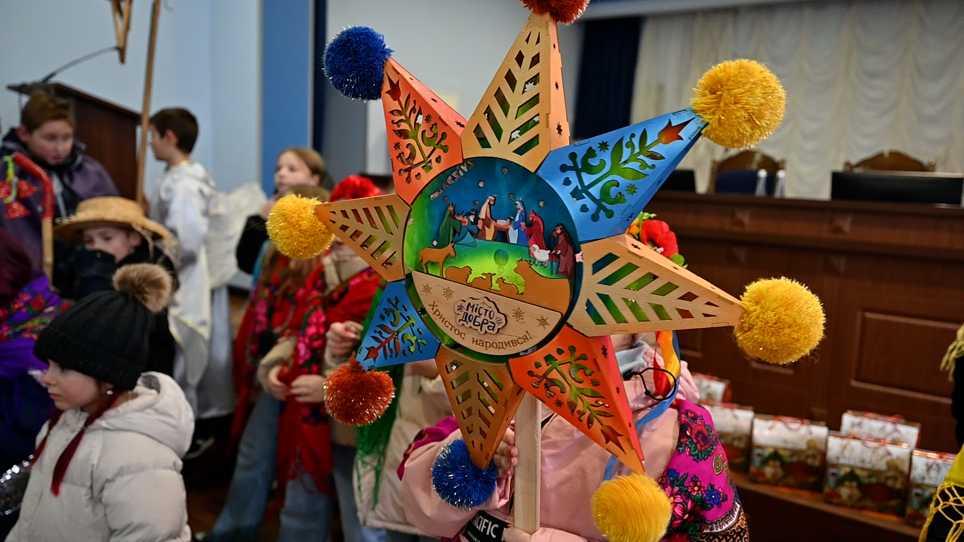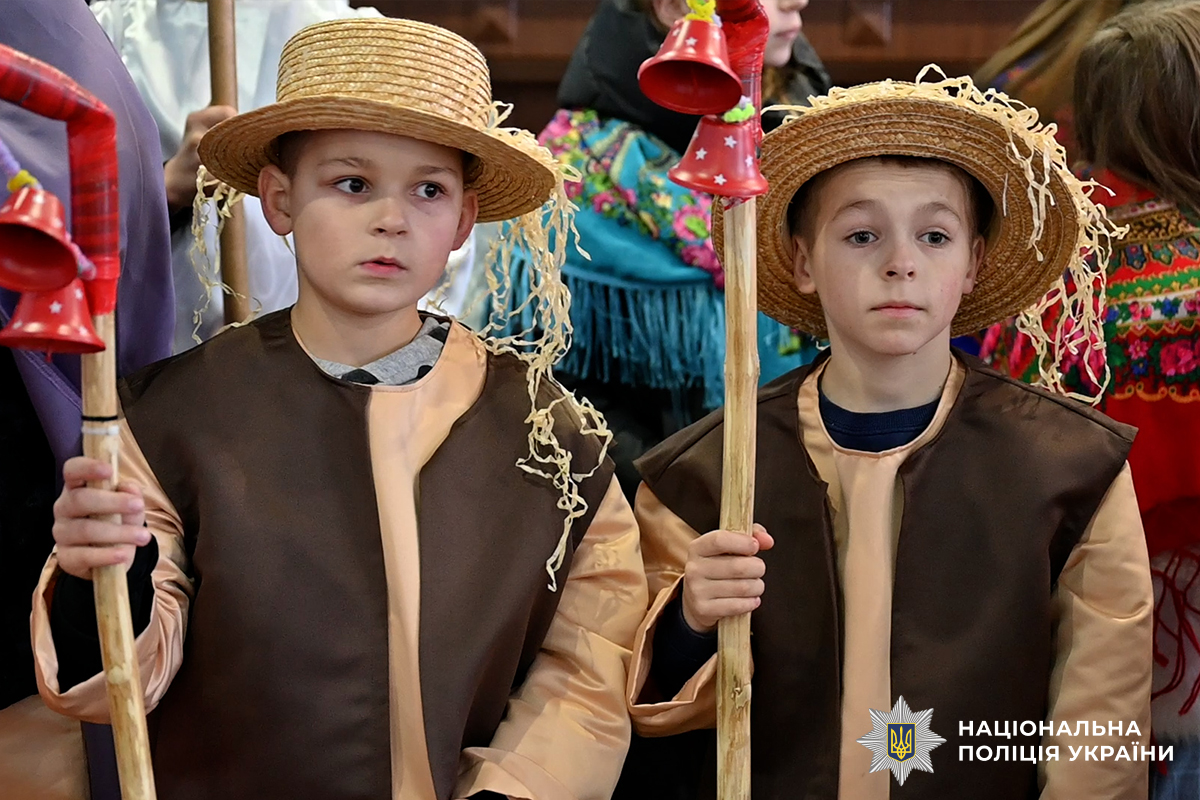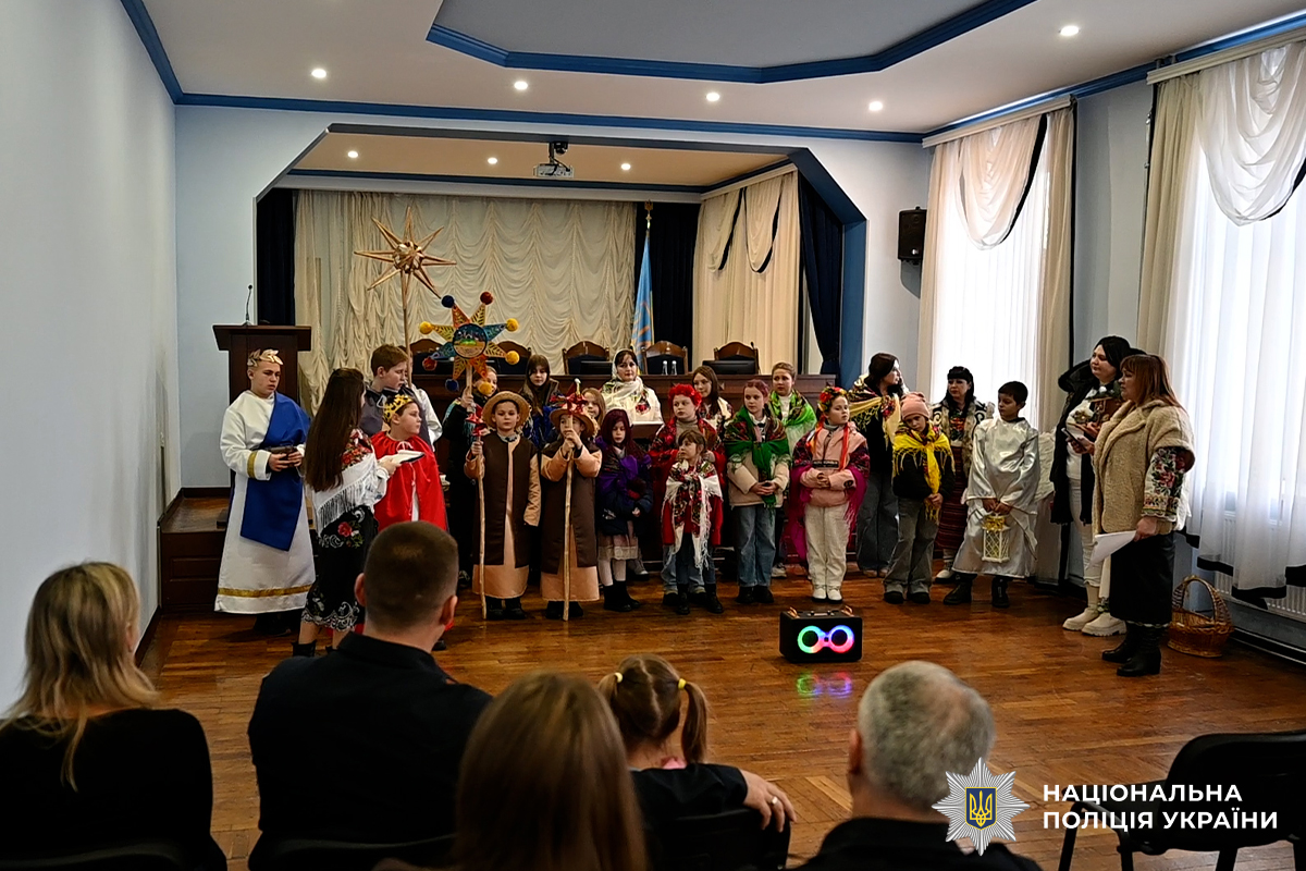 Цьогорічна коляда поєднала народні мотиви й сучасність: вихованці центру в образах фольклорних персонажів виконали різдвяні пісні та побажали поліцейським і їхнім родинам миру, злагоди, міцного здоров’я й Перемоги.
