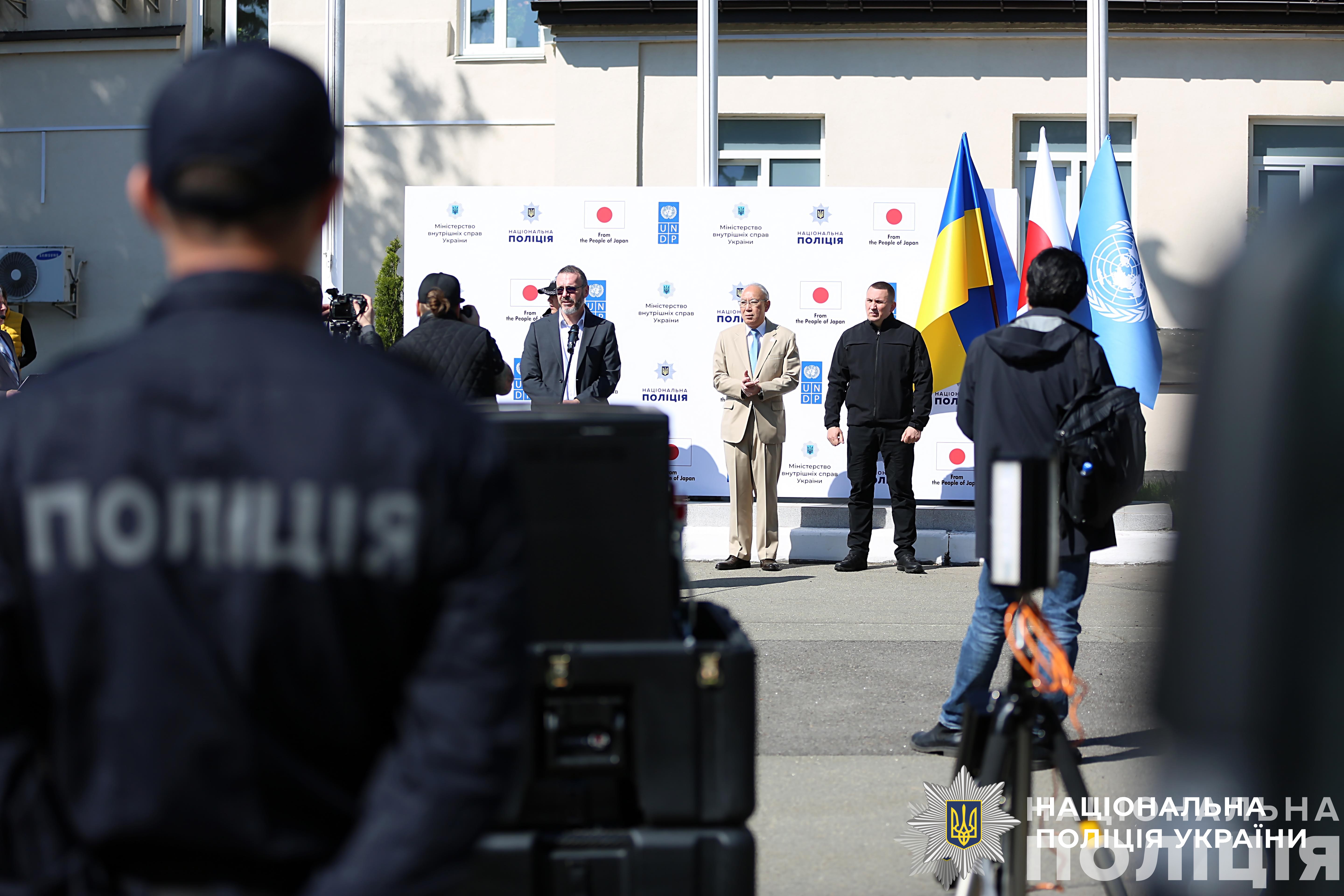 Сьогодні, 15 травня, за підтримки Програми розвитку Організації Об’єднаних Націй (ПРООН) в Україні та Посольства Японії в Україні відбулася передача техніки для посилення криміналістичних підрозділів Нацполіції. Це стало можливим у рамках проєкту міжнародної технічної допомоги «Посилення гуманітарної безпеки в Україні шляхом реагування на багатовимірну кризу, спричинену війною, та подолання високої вразливості зумовленої війною, що триває в країні».