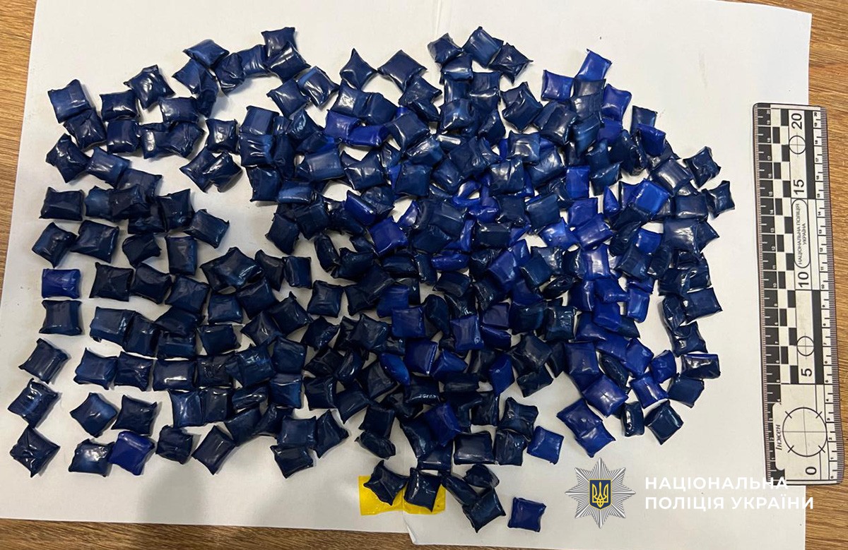 У ході санкціонованих обшуків за місцем проживання обвинуваченого правоохоронці вилучили низку речових доказів, серед яких – майже 1000 зіп-пакетів з психотропною речовиною «PVP» та амфетамін, зіп-пакети з канабісом, пакувальні матеріали, банківські картки й інші докази протиправної діяльності.