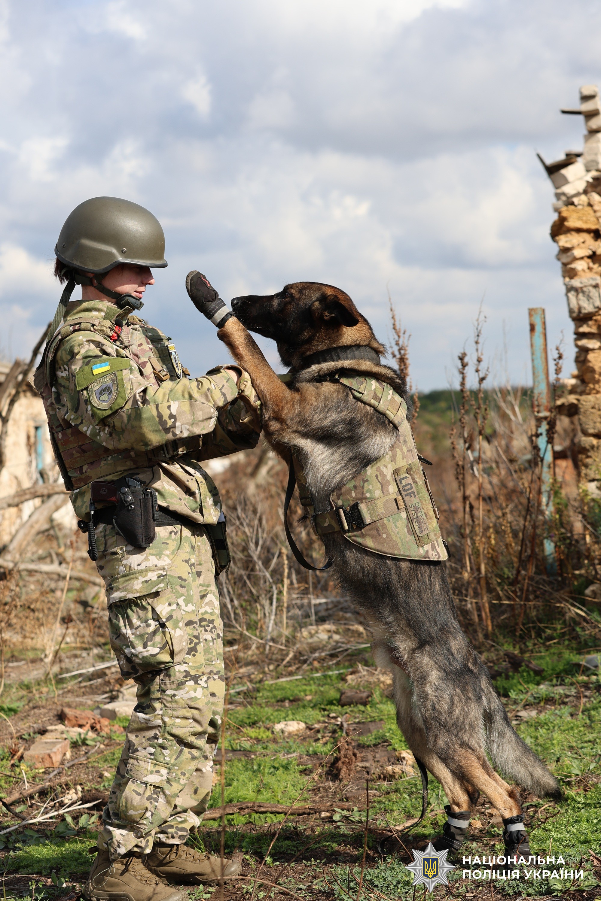 Також кінологи зі своїми службовими собаками долучаються до розмінування деокупованих територій нашої держави. Разом із фахівцями вибухотехнічної служби Нацполіції вони повертають безпеку в українські міста та села, очищаючи їх від ворожого залізяччя.