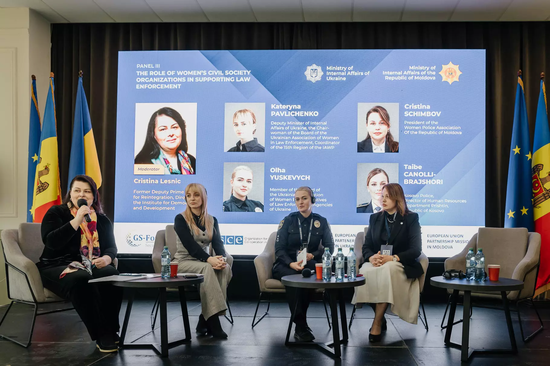 “Хочу щиро подякувати Міністерству внутрішніх справ Республіки Молдова, пані міністерці Даніелі Місаїл-Нікітін, Академії «Ştefan cel Mare», а також нашим міжнародним партнерам - GS Foundation, ОБСЄ та КМЄС за підтримку, довіру та високий рівень організації цього заходу. Для України надзвичайно важливо мати можливість працювати разом у професійному та партнерському середовищі. Сьогодні ми об’єднані спільним розумінням викликів і відповідальності за безпеку в регіоні, а також спільним прагненням до розвитку рівних можливостей у секторі безпеки. Переконана, що саме через обмін досвідом, зміцнення професійних зв’язків і підтримку ми зможемо формувати сучасну, стійку та більш ефективну систему безпеки”, - звернулася до присутніх Катерина Павліченко.