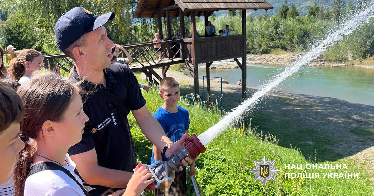 Аби відпочинок був не лише веселим, а й корисним, колеги правоохоронців разом із рятувальниками провели практичні заняття з безпеки: як захиститися від злочинців, що потрібно знати про кібербезпеку, зокрема вербування, як діяти під час надзвичайних ситуацій і до кого звертатися по допомогу.
