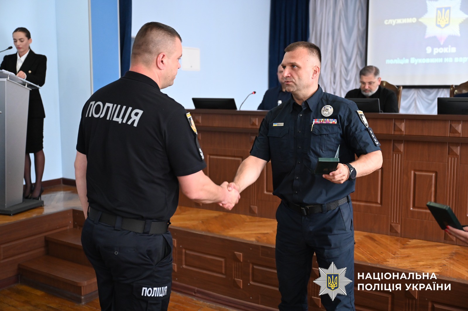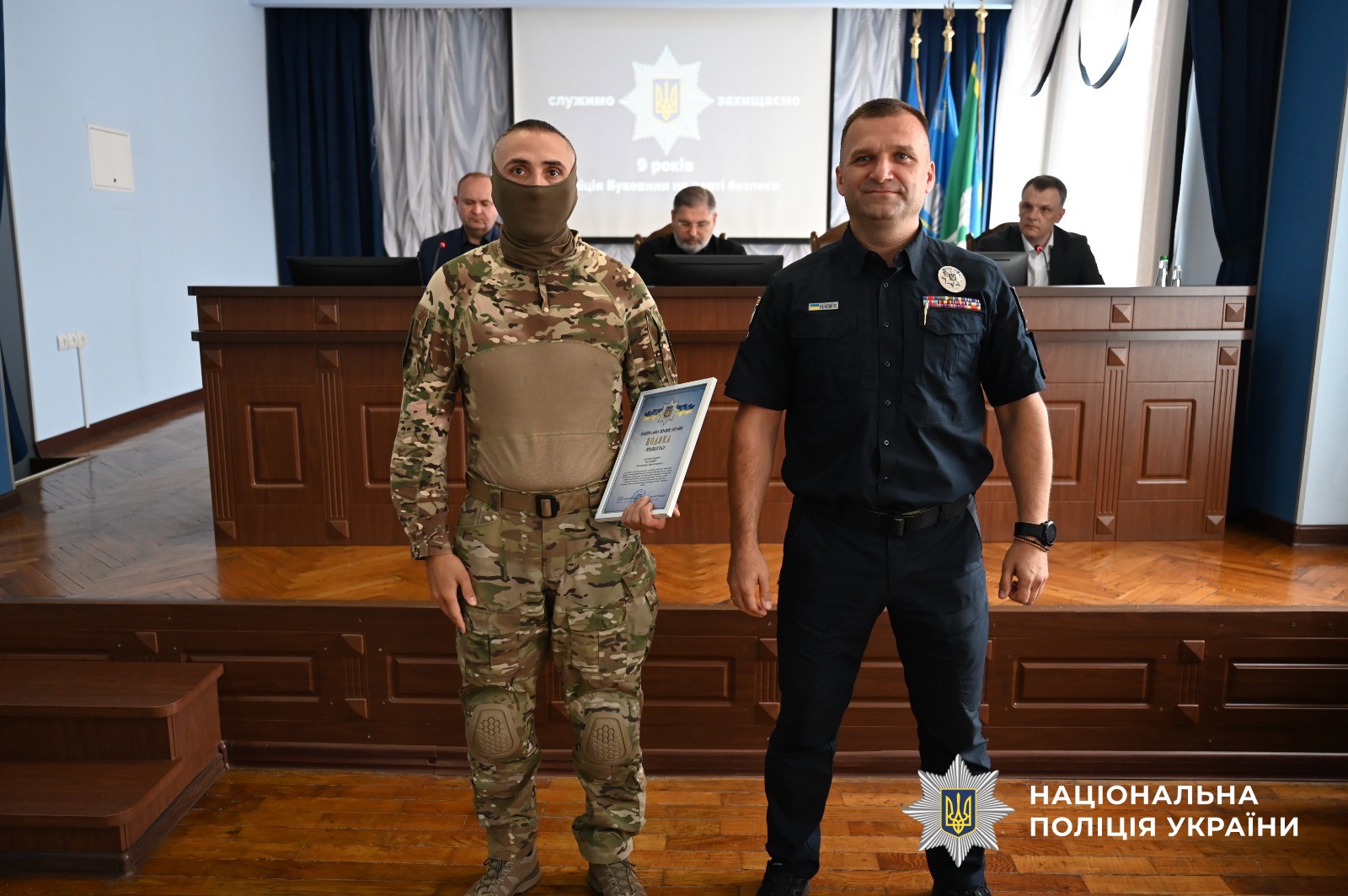 У своєму вітальному слові керівник поліції Буковини Віктор Нечитайло подякував особовому складу за професійне несення служби щодо охорони безпеки і порятунку громадян, а також проявлений щоденний героїзм.