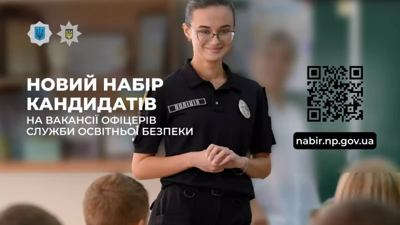 Головне управління Національної поліції в Чернівецькій області оголосило набір на вакантні посади інспекторів «Служба освітньої безпеки», які відповідатимуть за безпеку дітей під час освітнього процесу. Відбір на вакантні посади середнього складу поліції проводиться з 06 жовтня 2025 року по 28 листопада 2025 року, а реєстрація анкет з 06 по 30 жовтня 2025 року.