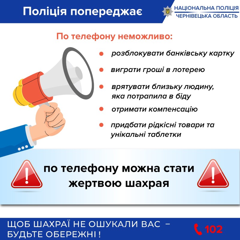 Якщо ви все ж таки потрапили до пастки аферистів — одразу телефонуйте на спецлінію «102».