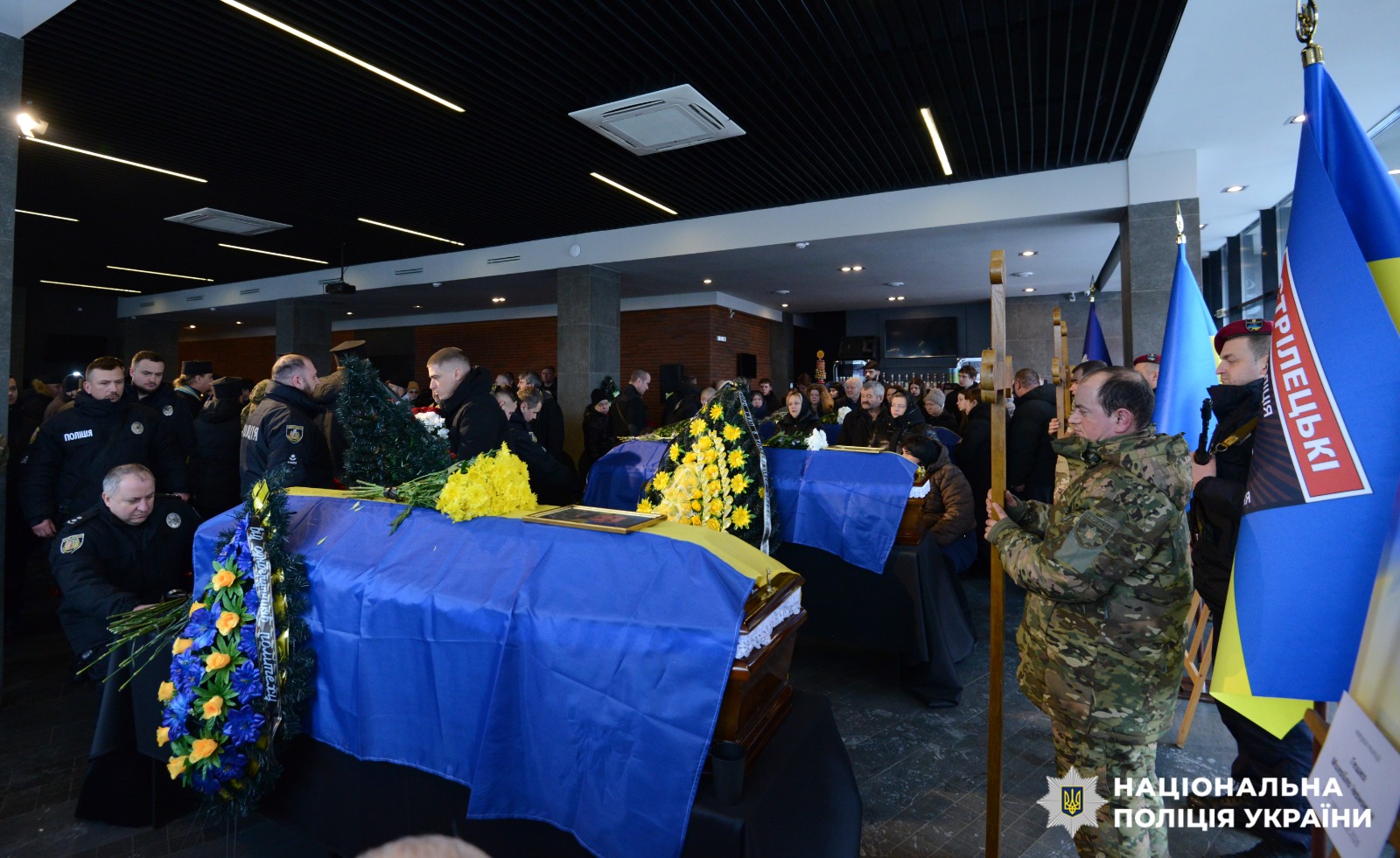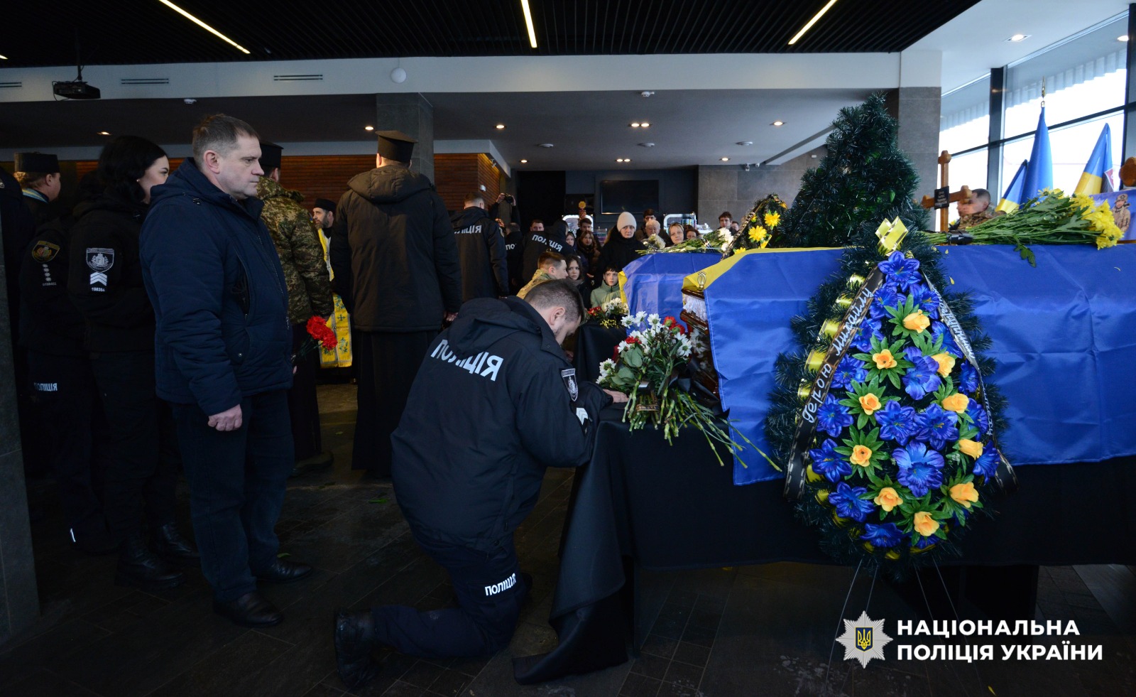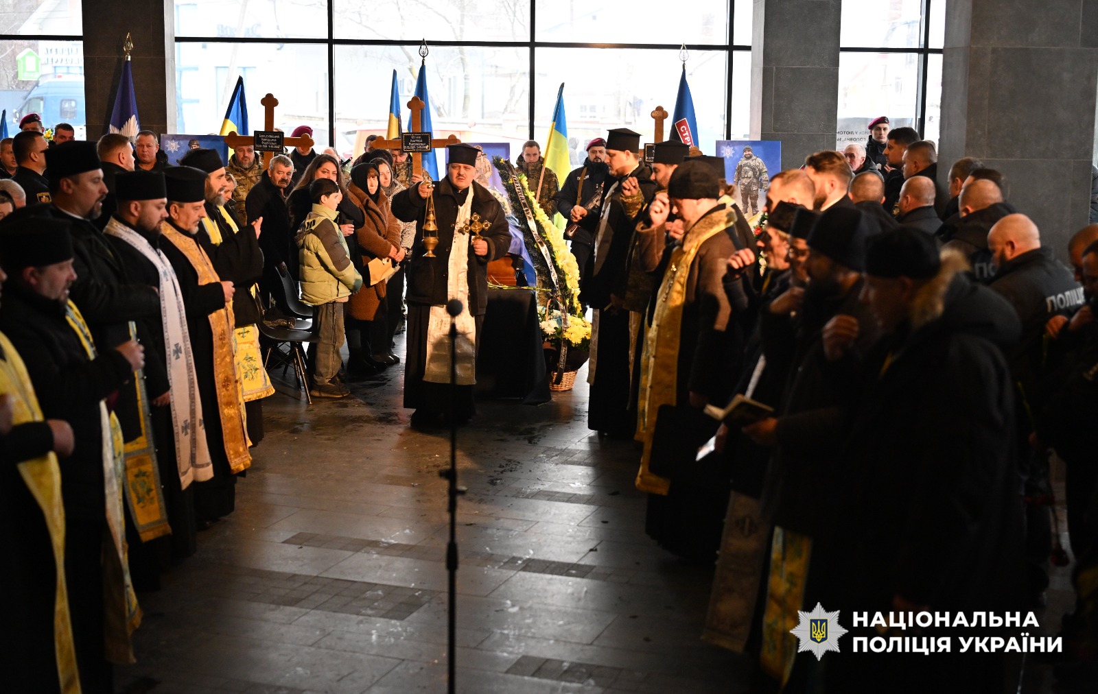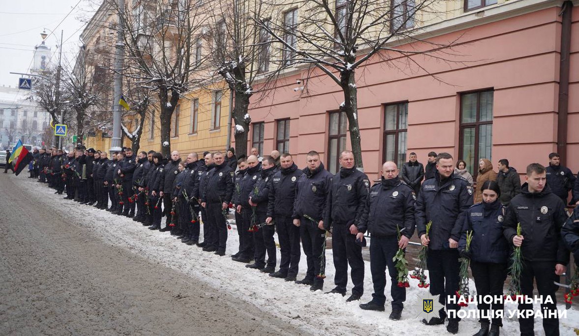 Церемонія прощання та заупокійна літія за мужніми поліцейськими відбулася сьогодні, 18 лютого, у Чернівцях.