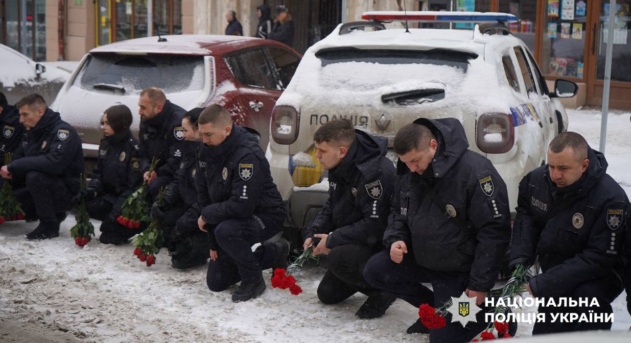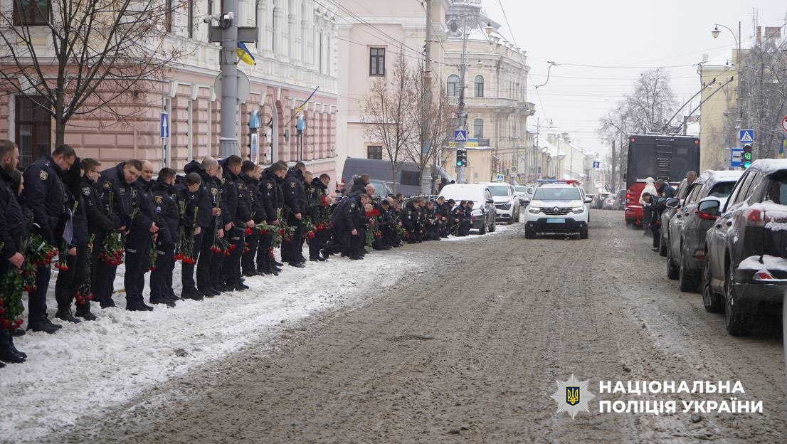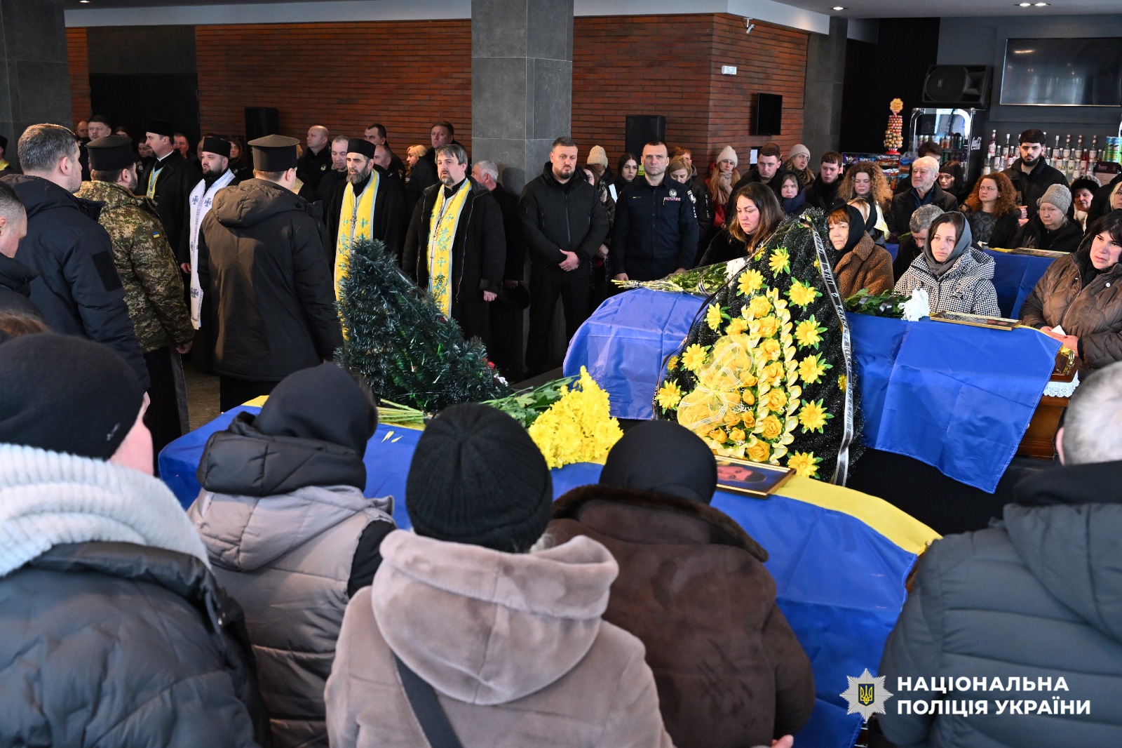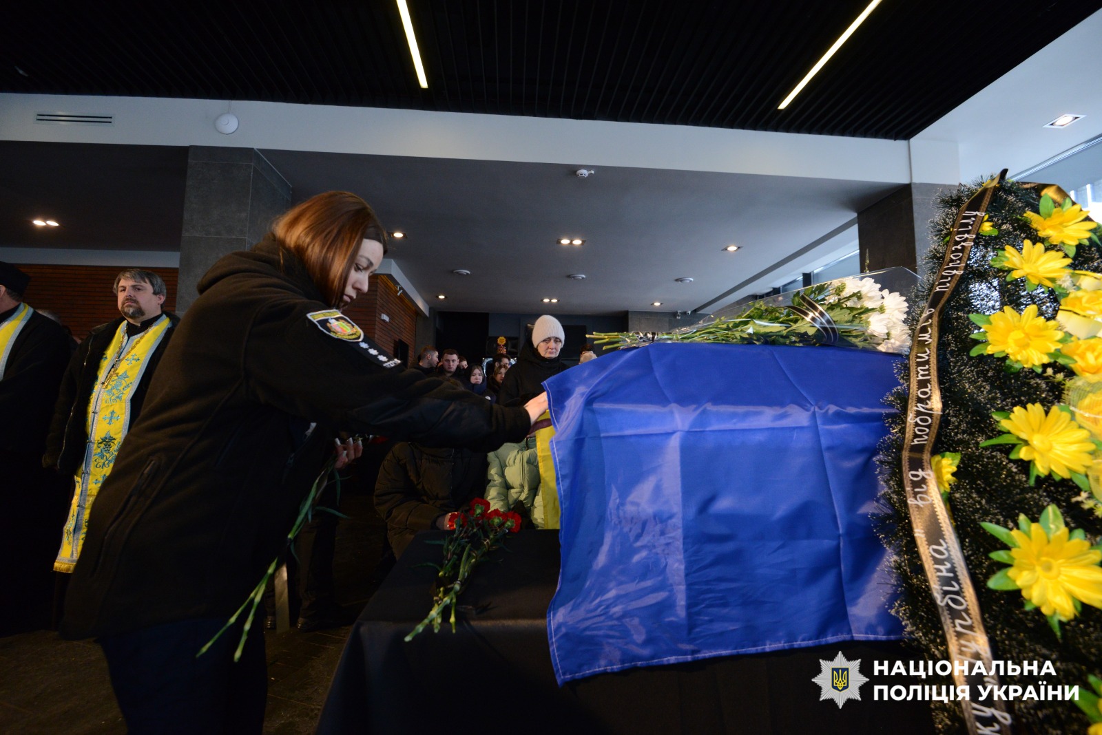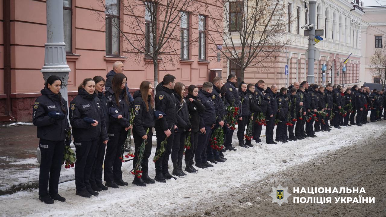 Церемонія прощання та заупокійна літія за мужніми поліцейськими відбулася сьогодні, 18 лютого, у Чернівцях.