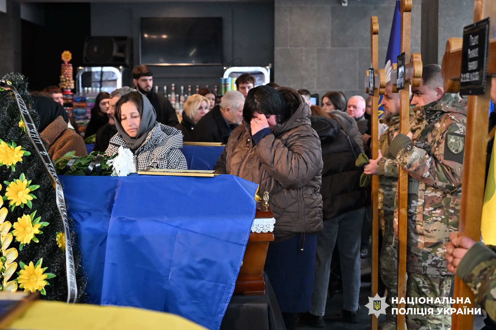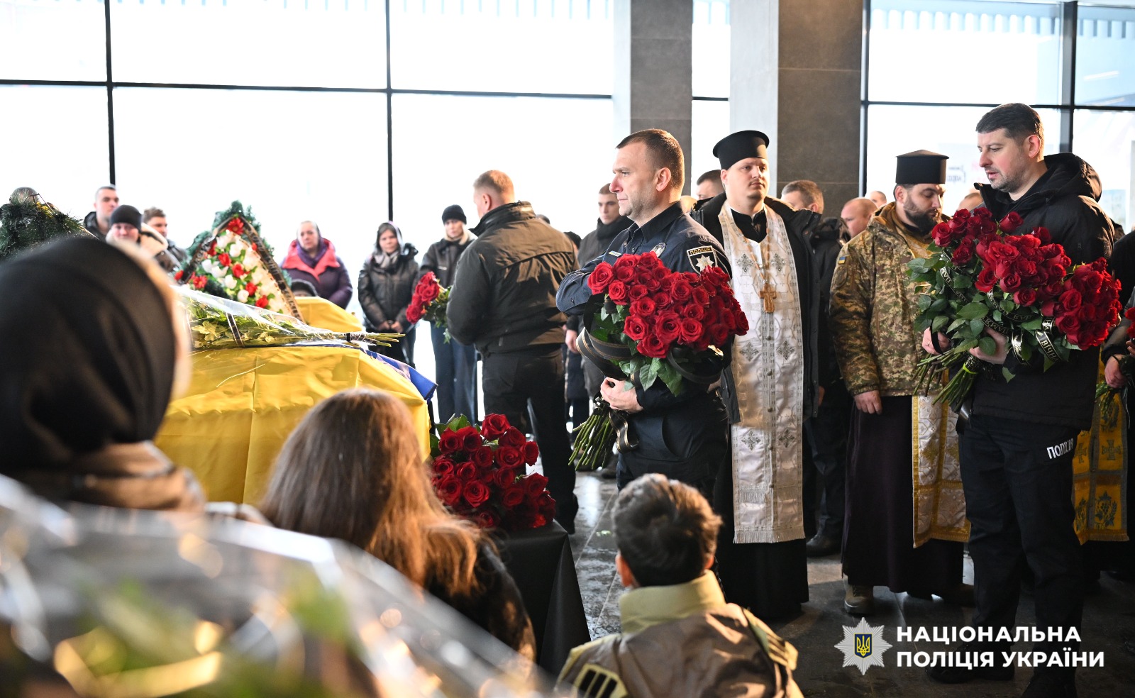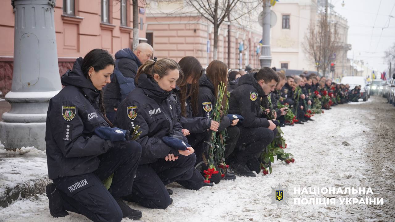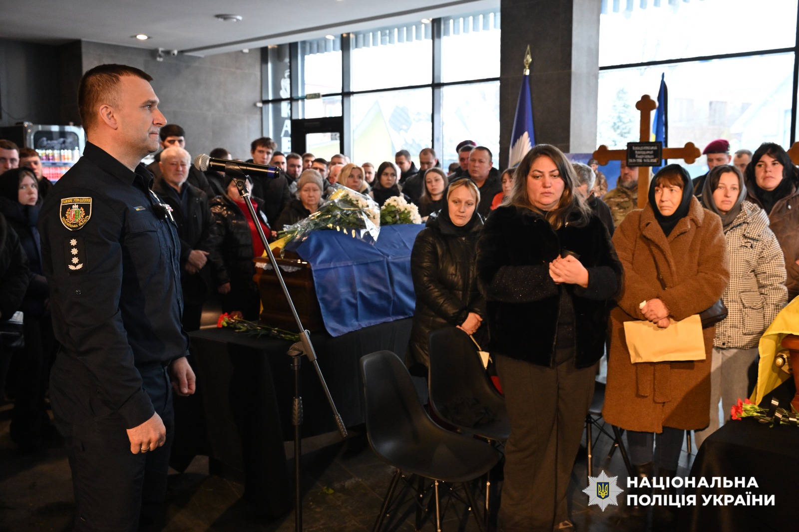 Церемонія прощання та заупокійна літія за мужніми поліцейськими відбулася сьогодні, 18 лютого, у Чернівцях.