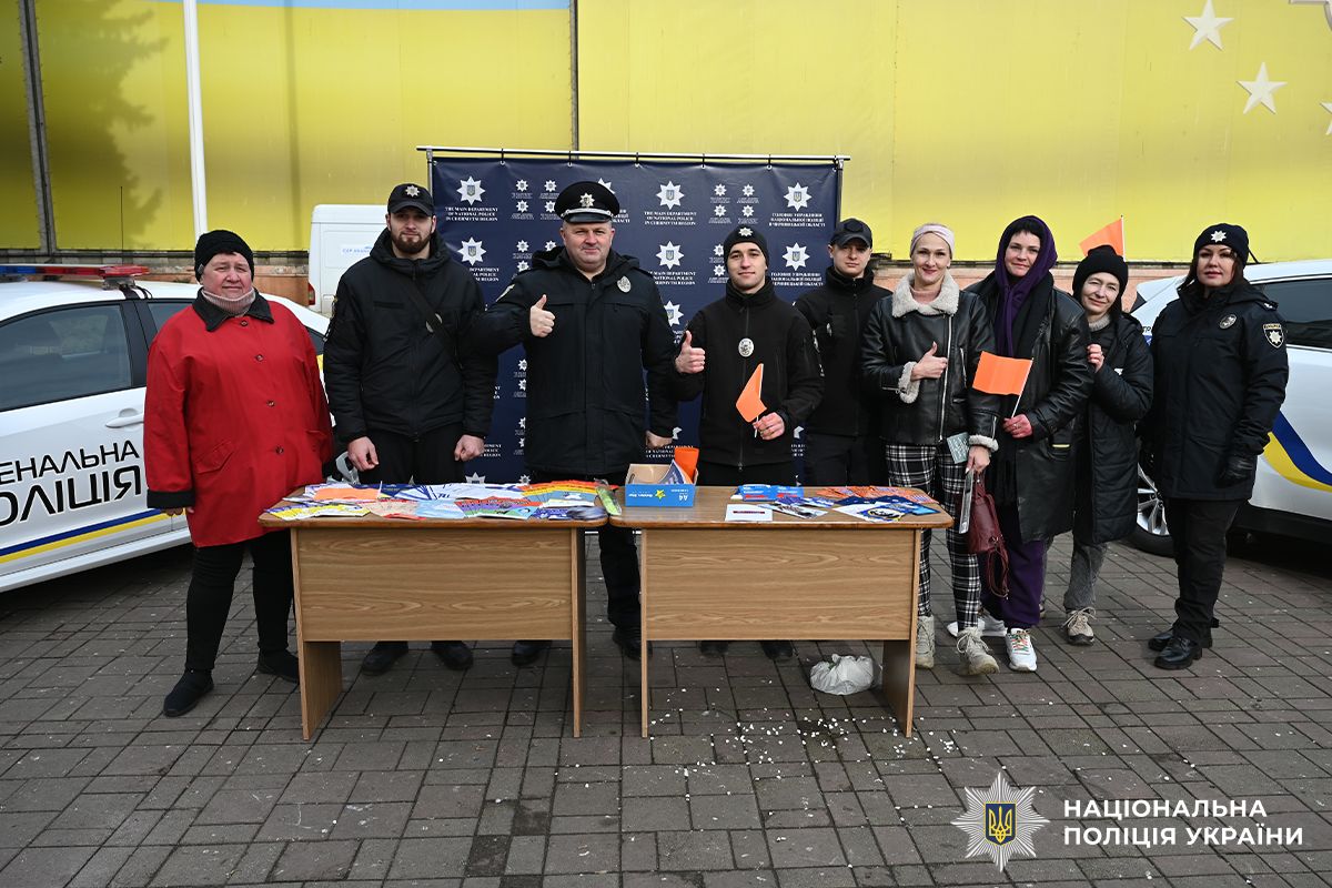 Учасники акції отримали від поліцейських тематичні буклети, флікери, помаранчеві прапорці.