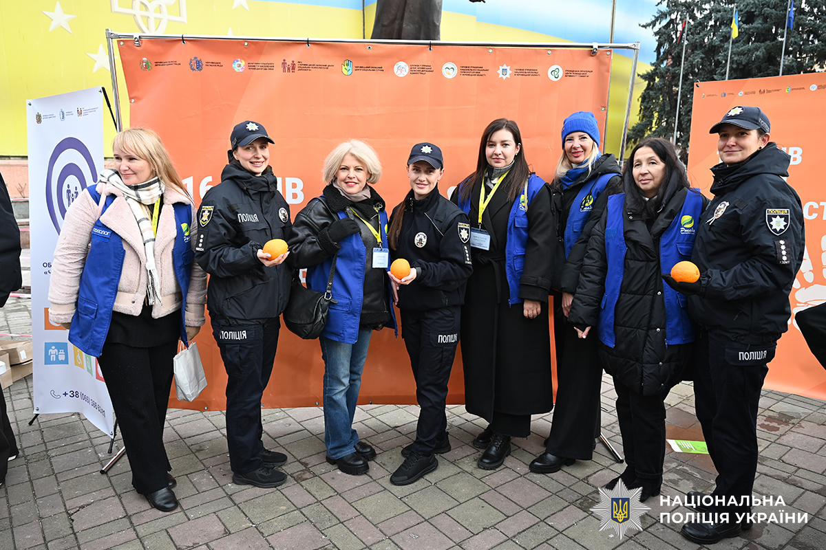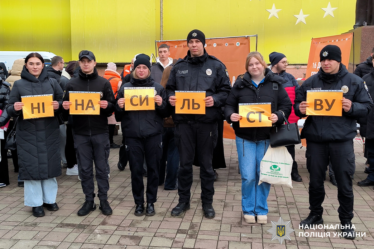Поліцейські, спілкуючись з юними та дорослими жителями міста і області, розповідали про важливість сьогоднішньої акції та актуальність проблеми насильства, закликаючи присутніх не бути байдужими до цього жахливого явища. Натомість повідомляти правоохоронців та відповідні служби для боротьби з насильством та підтримки громадян, котрі можуть бути в небезпеці.
