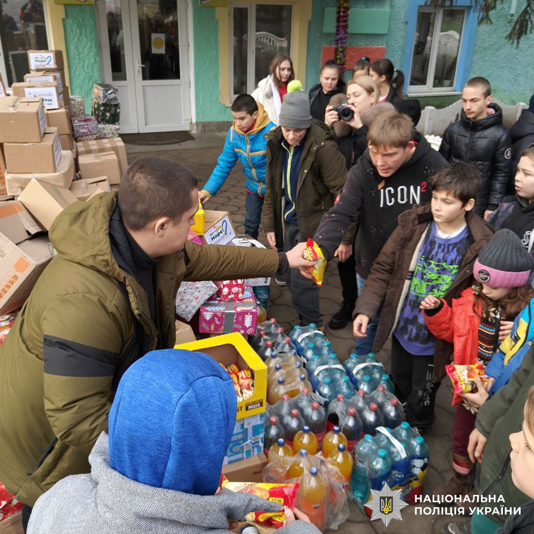 Для юних вихованців комунальних закладів «Рацинська спеціальна школа Вознесенського району Миколаївської обласної ради» та «Первомайська спеціалізована школа Миколаївської обласної ради» співробітники Управління Головної інспекції ГУНП в Чернівецькій області разом з благодійниками «ГО «Справа Кольпінга в Україні» організували та привезли різдвяні пакунки, продукти харчування, солодощі, фрукти, а також іграшки і теплий дитячий одяг.