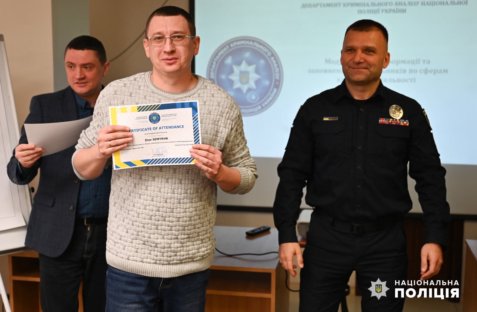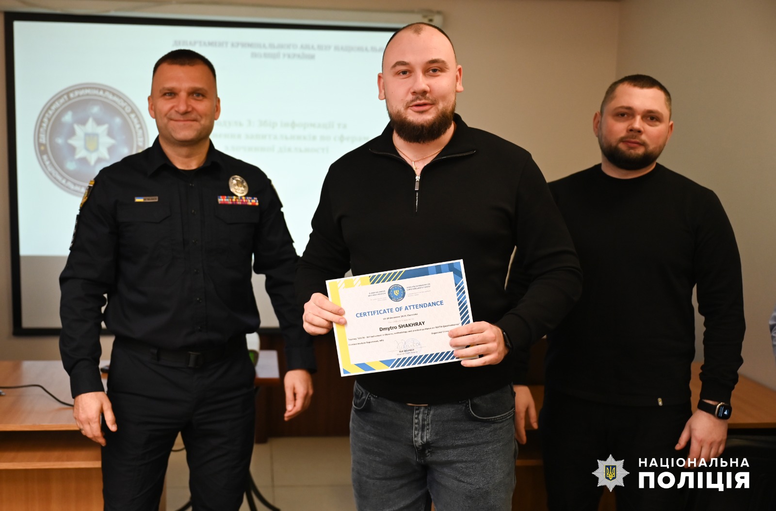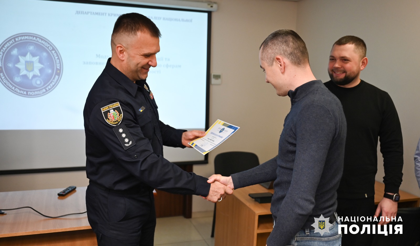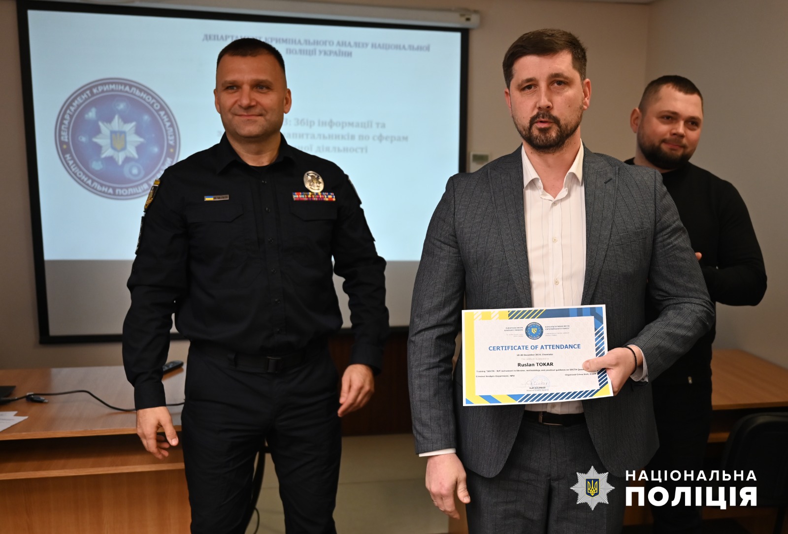 Регіональний захі для правоохоронців проходив протягом трьох днів з 18 по 20 грудня у Чернівцях. Мета – вдосконалення знань щодо системи оцінювання загроз за системою SOCTA в Україні за 2021-2024 роки. Керівник буковинської поліції Віктор Нечитайло разом із начальником Департаменту кримінального аналізу НПУ Романом Бутко вручив учасникам навчально-практичного курсу сертифікати.