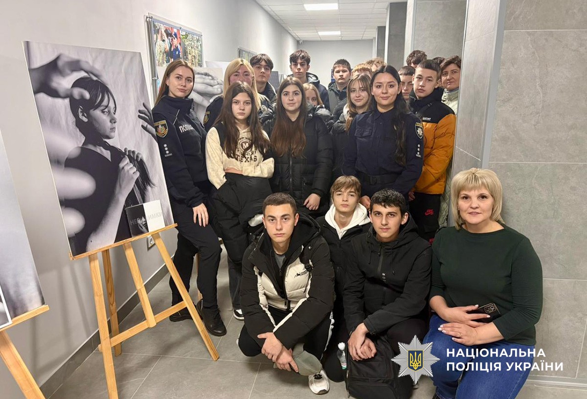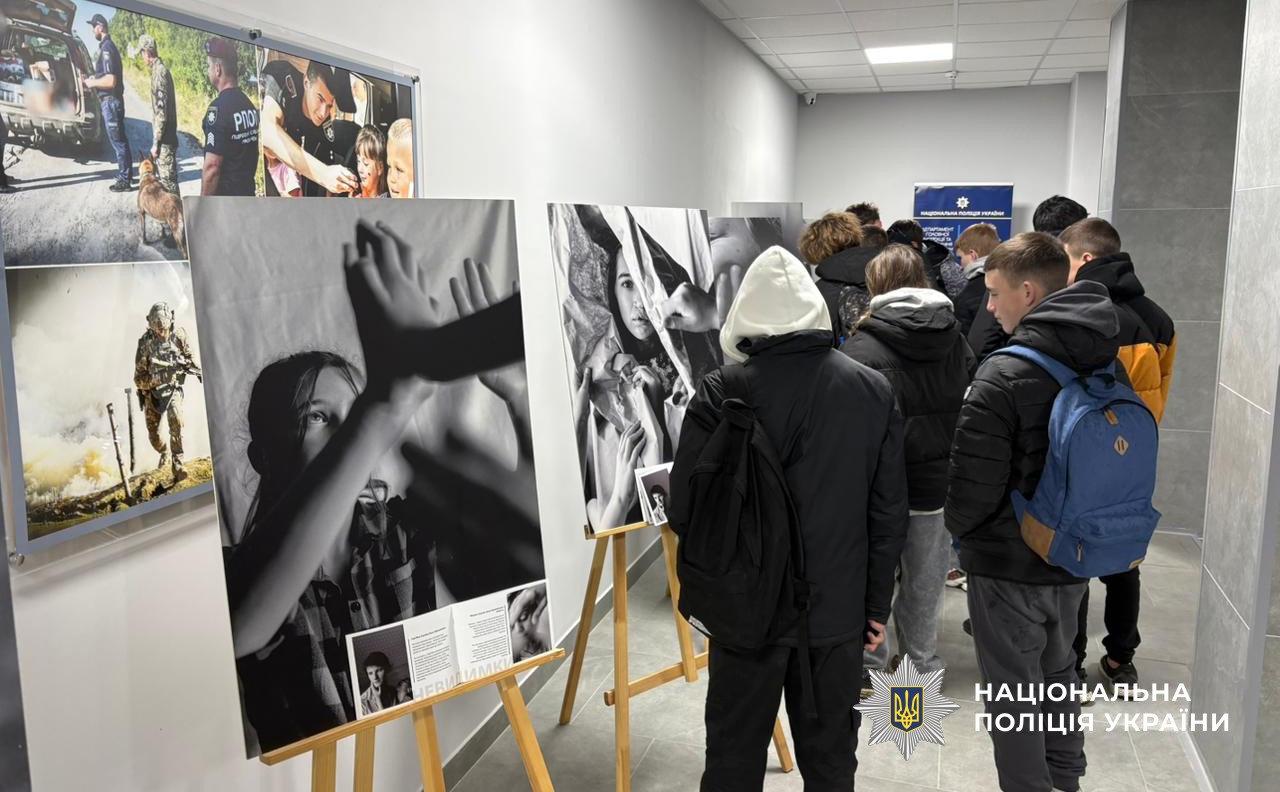 Під час візиту присутні також переглянули фотовиставку «НЕВИДИМКИ», присвячену дітям, які стали вимушеними свідками домашнього насильства. Співробітники поліції розповіли студентам про причини та наслідки цього явища, види насильства та алгоритм дій у випадках, коли хтось потребує допомоги. Особливу увагу акцентували на тому, що мовчати про насильство не можна — важливо одразу звертатися по допомогу.