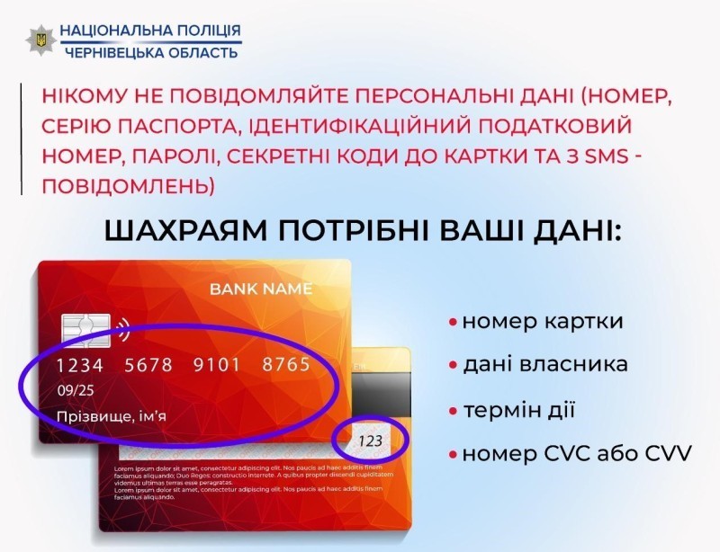 Цього ж дня жертвою аналогічної схеми аферистів стала 37-річна жителька села Череш Чернівецького району. Отримавши необхідну банківську інформацію, шахраї перерахували з карткового рахунку буковинки 14 400 гривень.