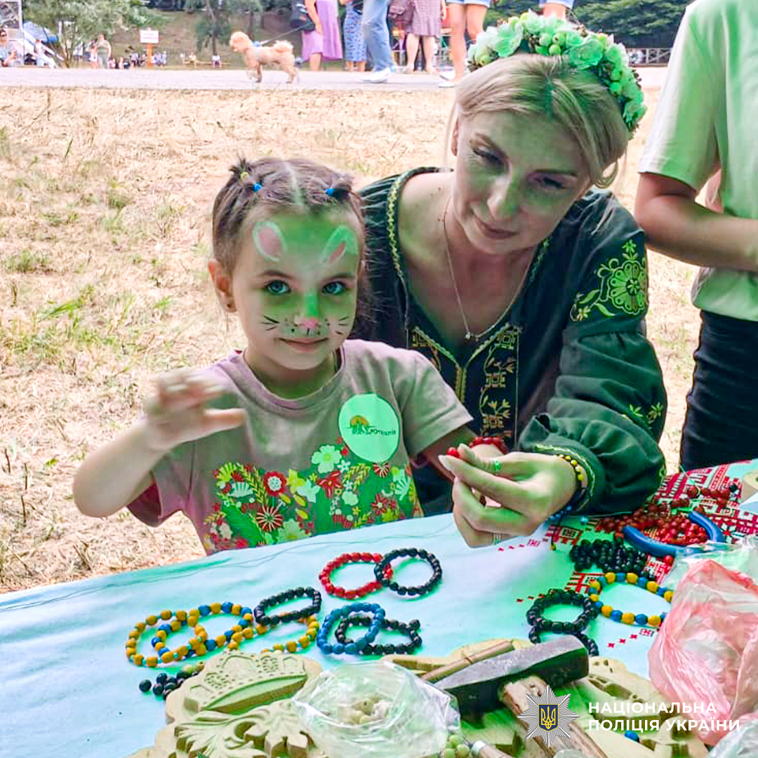 Поліцейська провела для присутніх майстер-клас з виготовлення унікальних виробів ручної роботи – браслетів з дерева. З її допомогою дружини оборонців разом з дітками створювали автентичні браслети. Для них вони самостійно підбирали кольори – червоно-чорні та жовто-блакитні – і створювали самобутні орнаменти. Складені оригінальні вироби діти виявили бажання передати для своїх рідних, які нині захищають нашу державу від ворога.