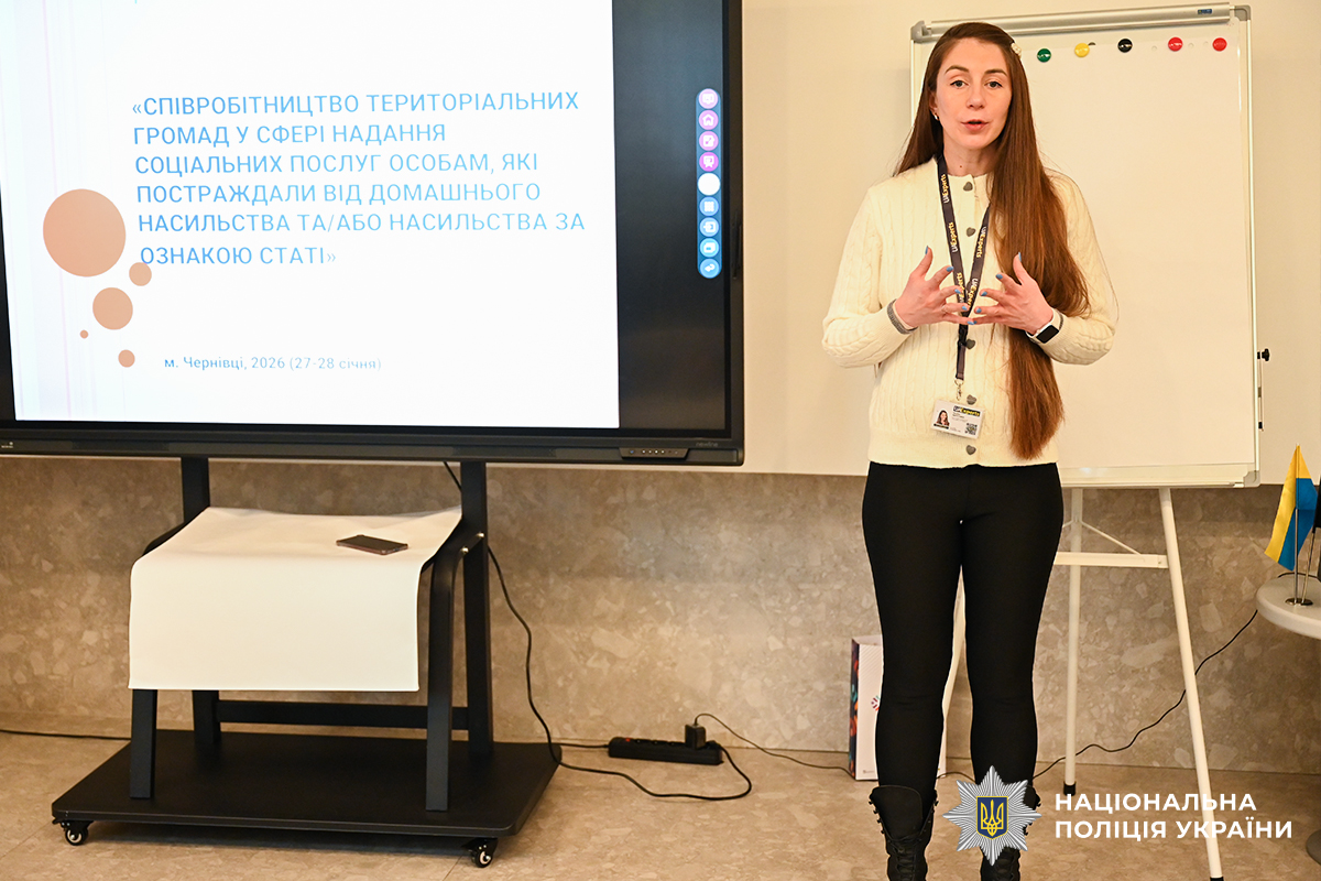 27 січня у Чернівцях розпочався навчальний тренінг на тему: "Посилення ефективності взаємодії суб'єктів у сфері запобігання та протидії домашньому насильству та насильству за ознакою статі". Від поліції Буковини у заході взяли участь поліцейські офіцери Глибоцької, Кіцманської, Сторожинецької, Веренчанської та Новоселицької громад Василь Гончаров, Роман Закропивний, Ілля Матейчук, Михайло Луцюк і Віталій Лях.