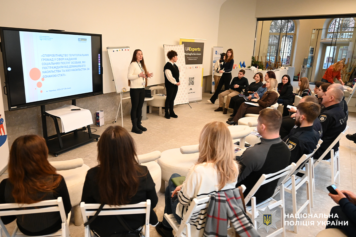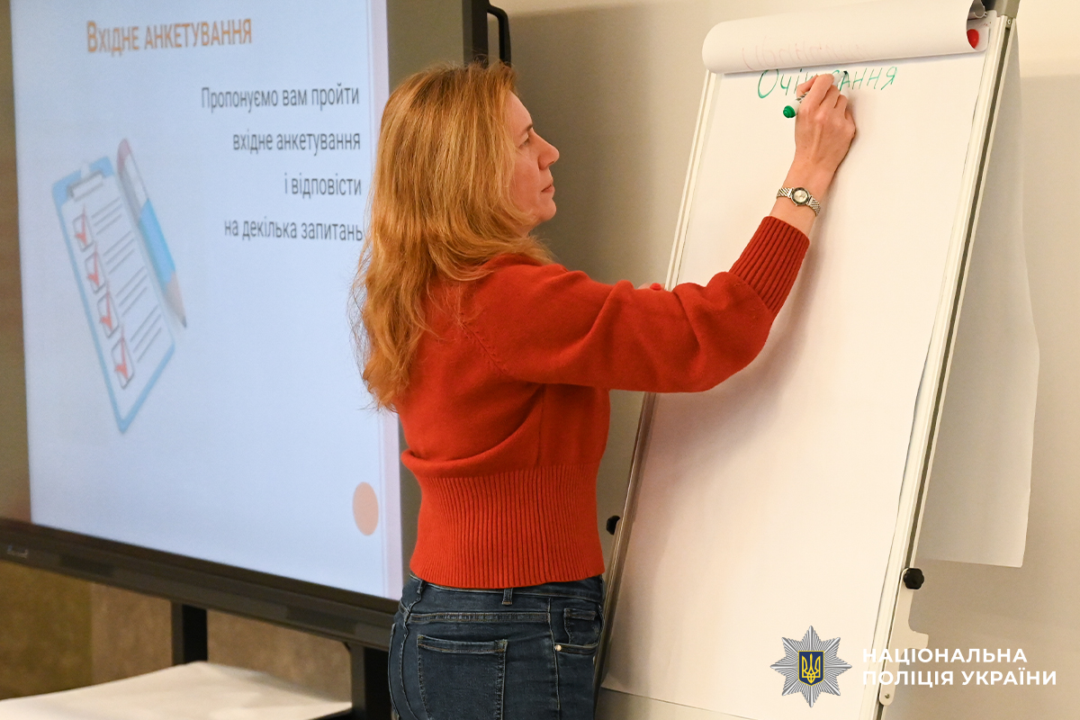 Під час семінару у форматі практичної роботи в групах поліцейські офіцери вказаних громад разом з іншими учасниками напрацювали спільне бачення та розуміння проблеми, проаналізували практичні кейси та заходи захисту постраждалих осіб, а також узгодили єдине бачення реагування на проблему в межах громади.
