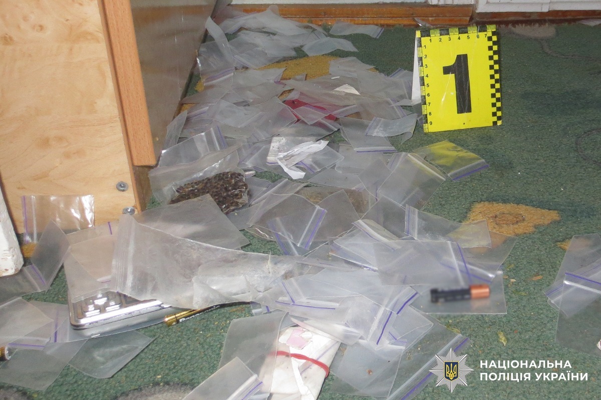 За силової підтримки бійців КОРДу поліцейські провели санкціонований обшук за місцем проживання жителя обласного центру, під час якого виявлено та вилучено зіп-пакети із вмістом речовин кристалоподібного та рослинного походження, пакувальні матеріали, мобільні телефони, кошти та інші докази протиправної діяльності. Загальна маса вилучених речовин становить орієнтовно 90 грамів, що відноситься до особливо великих розмірів.