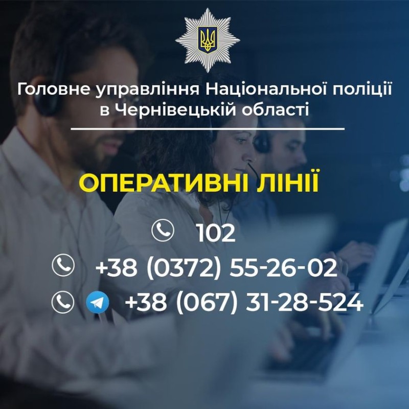 Співробітники поліції Чернівецької області нагадують, що крім звичної спецлінії «102», звернення від громадян приймаються на додаткові номери телефонів та у месенджері: у текстовому, аудіо та відеоформаті.
