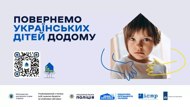 Міністерство внутрішніх справ України, Уповноважений з питань осіб, зниклих безвісти за особливих обставин, Національна поліція України, ініціатива Президента України «Bring Kids Back UA» у співпраці з МКЗБ запускають кампанію із повернення українських дітей додому.