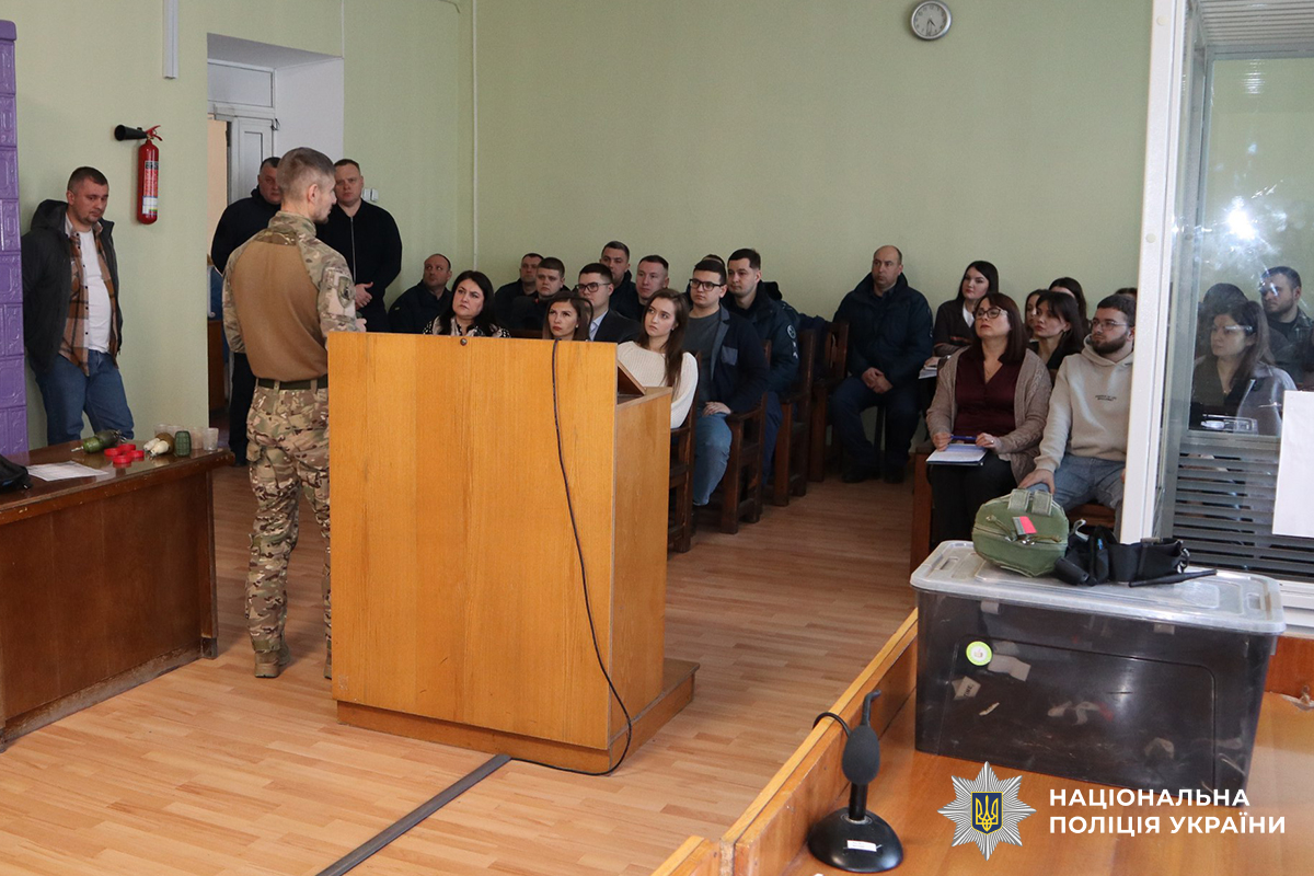 Співробітники Управління Головної інспекції ГУНП зосередили увагу фахівців судової сфери на важливості профілактики виникнення будь-яких загроз в умовах воєнного стану. Вони поділилися власним досвідом зі щоденної службової діяльності при надзвичайних ситуаціях та розповіли, як уникати помилок та діяти виважено, максимально результативно і без ризиків.