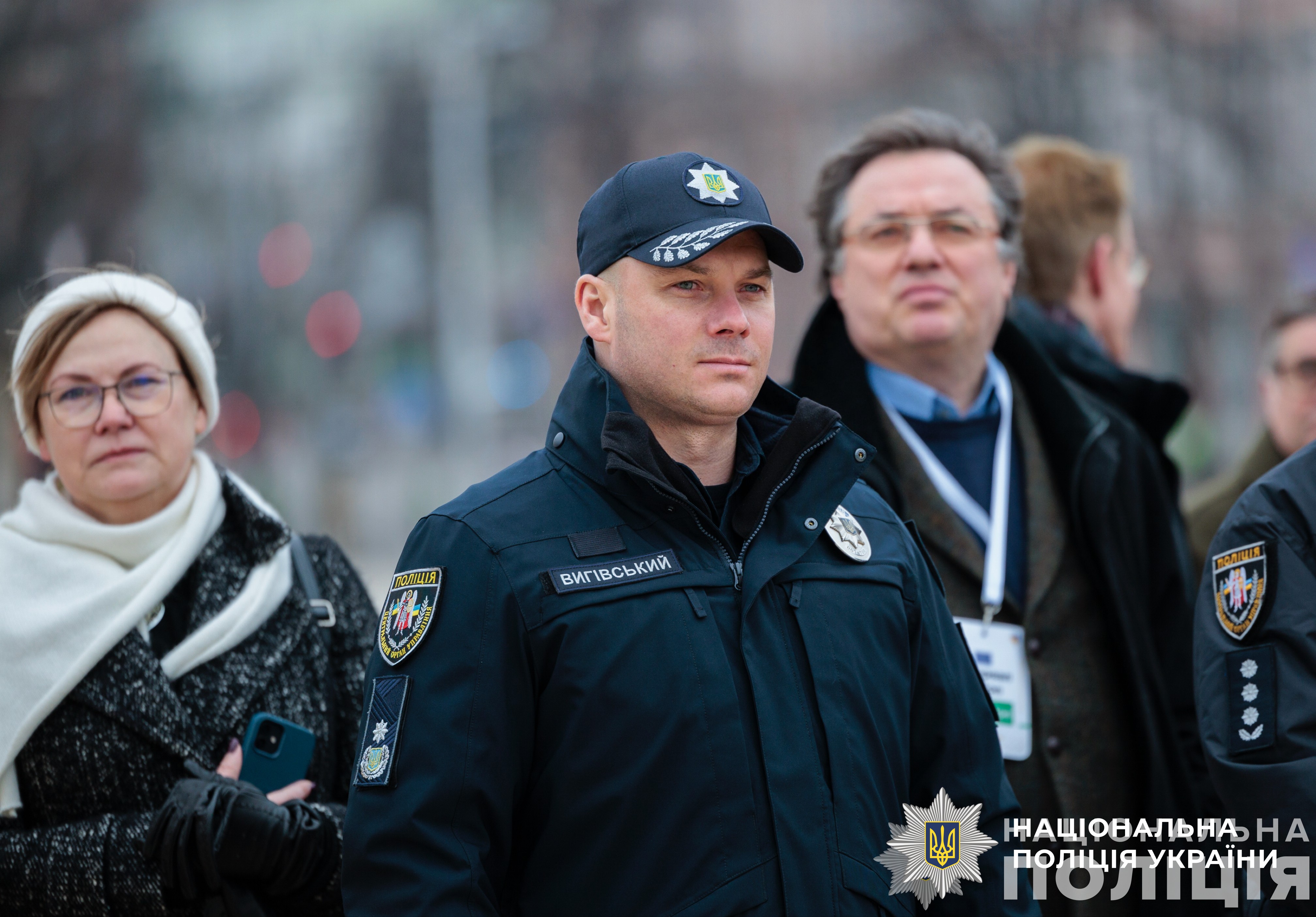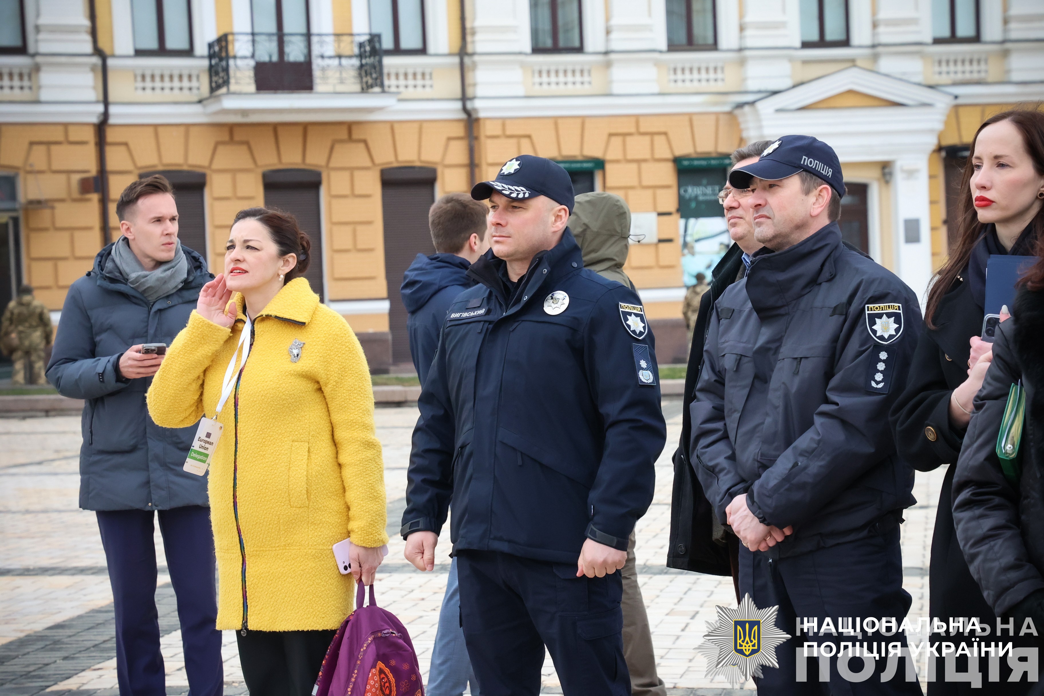 На Софійській площі Києва пані Президента, окрім Міністра внутрішніх справ України зустрічали Генеральний прокурор України Андрій Костін та Голова Національної поліції України Іван Вигівський.