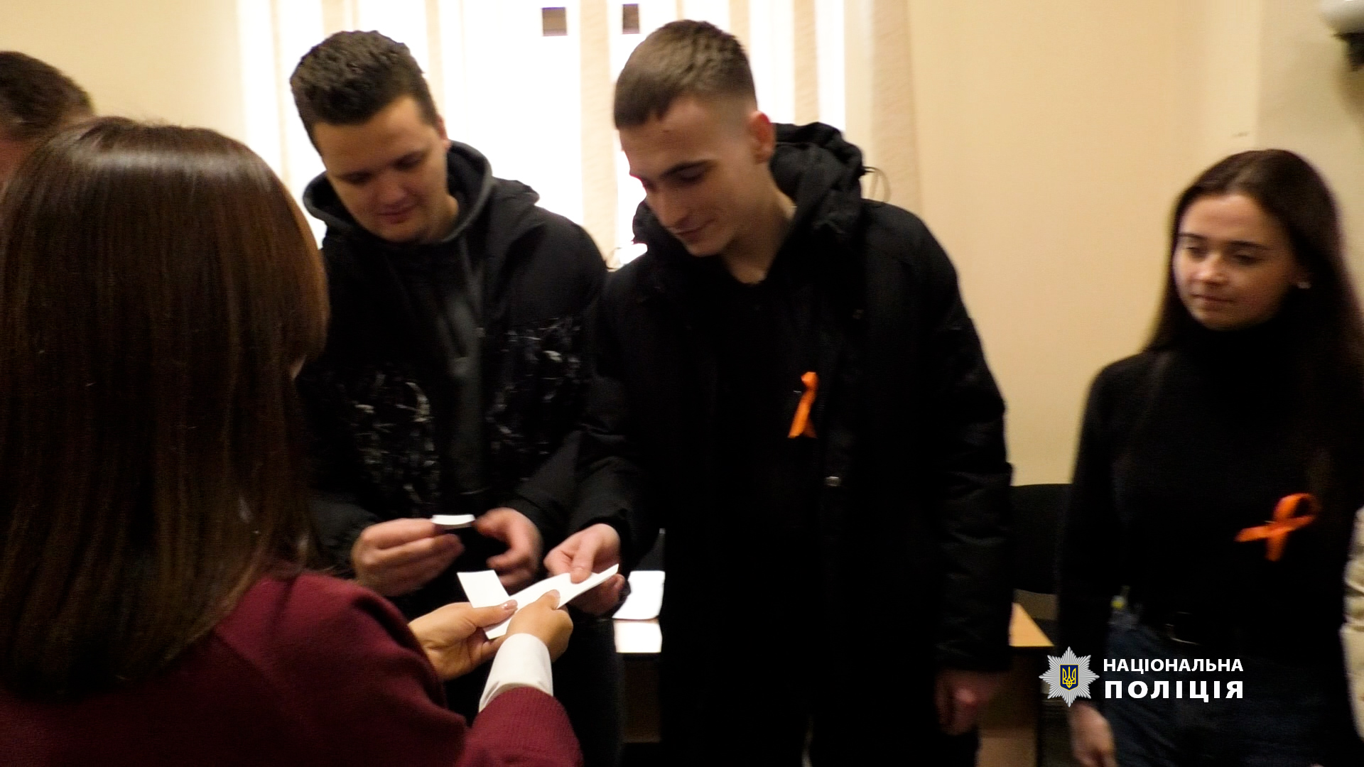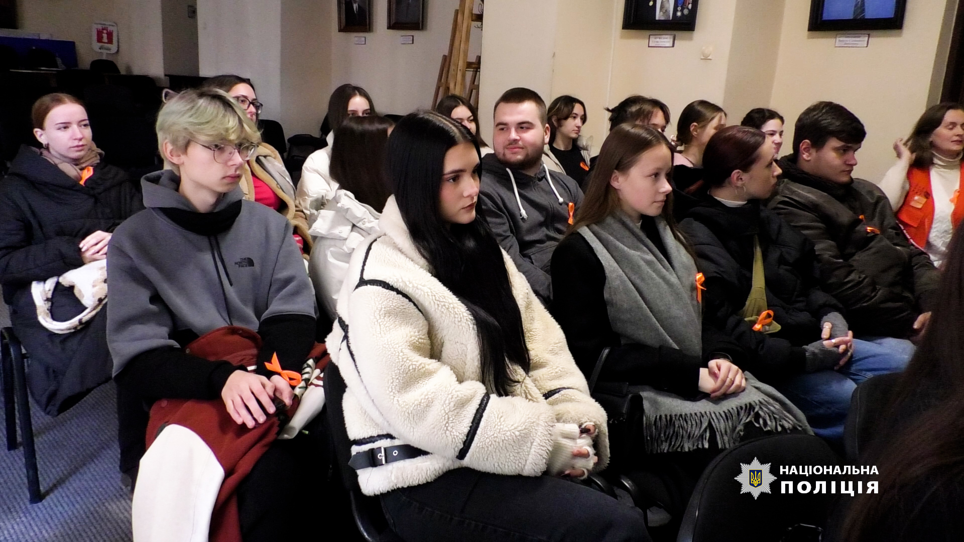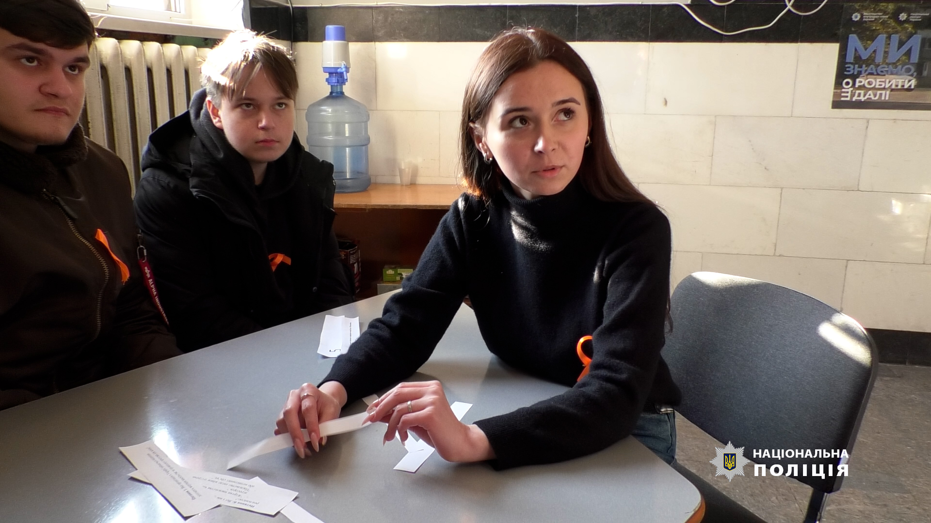 Під час інтерактивної гри поліцейські нагадали студентам про відповідальність, яка передбачена чинним законодавством за вчинення насильства та нагадали адреси, назви компетентних органів і служб, куди можна звертатися у випадку, якщо ви стали свідком чи постраждали від насильства.