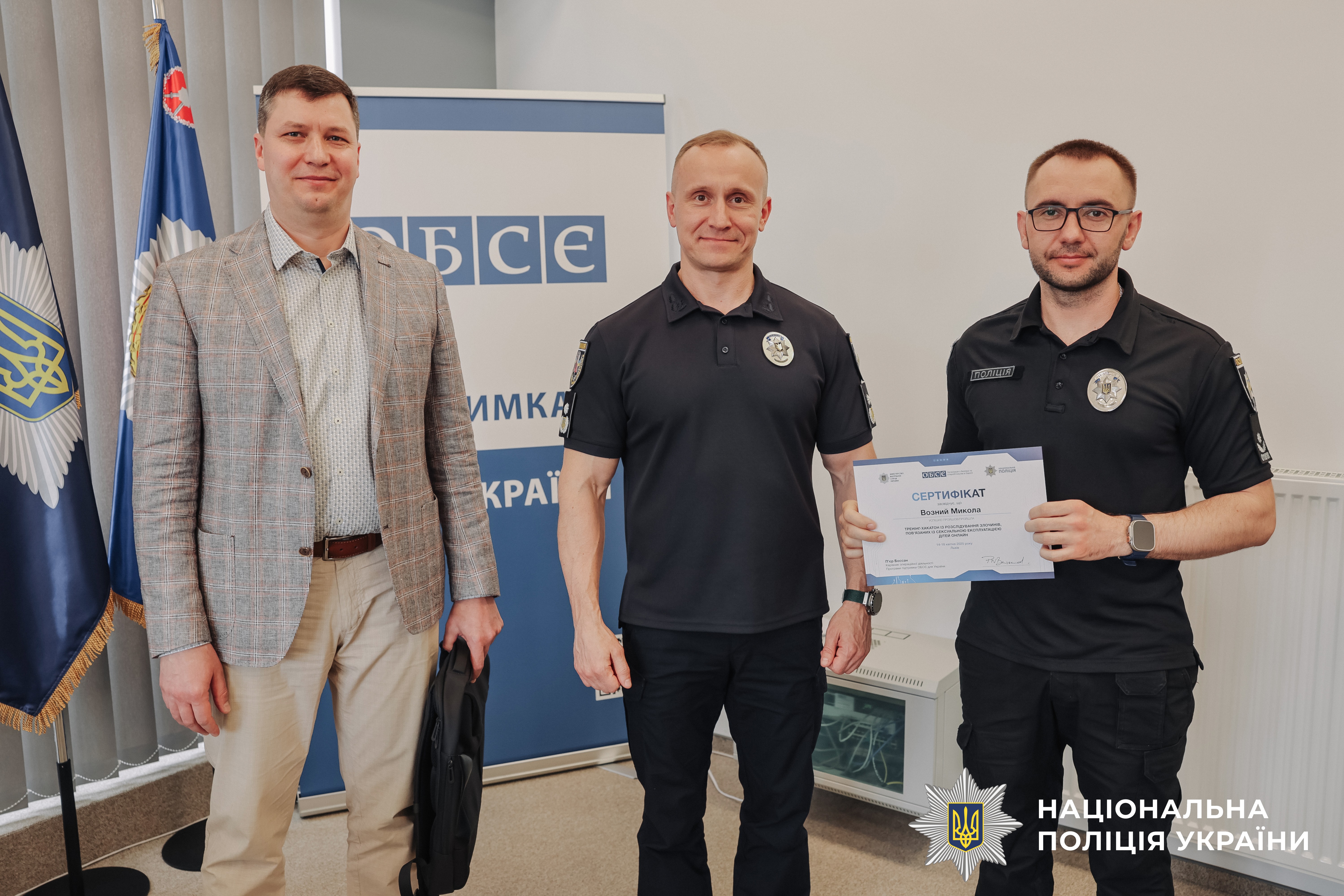 Заступник Голови Нацполіції – начальник кримінальної поліції Андрій Нєбитов привітав учасників з успішним завершенням тренінгу та вручив сертифікати: