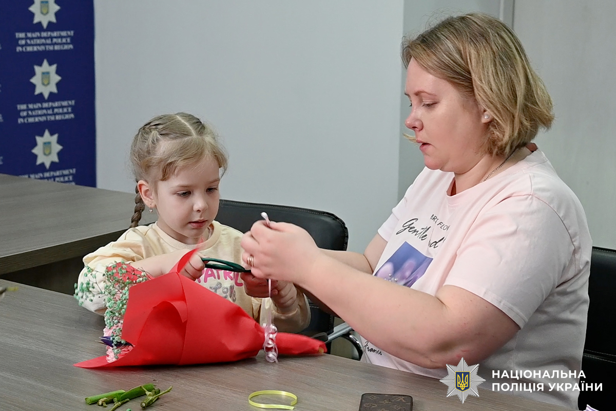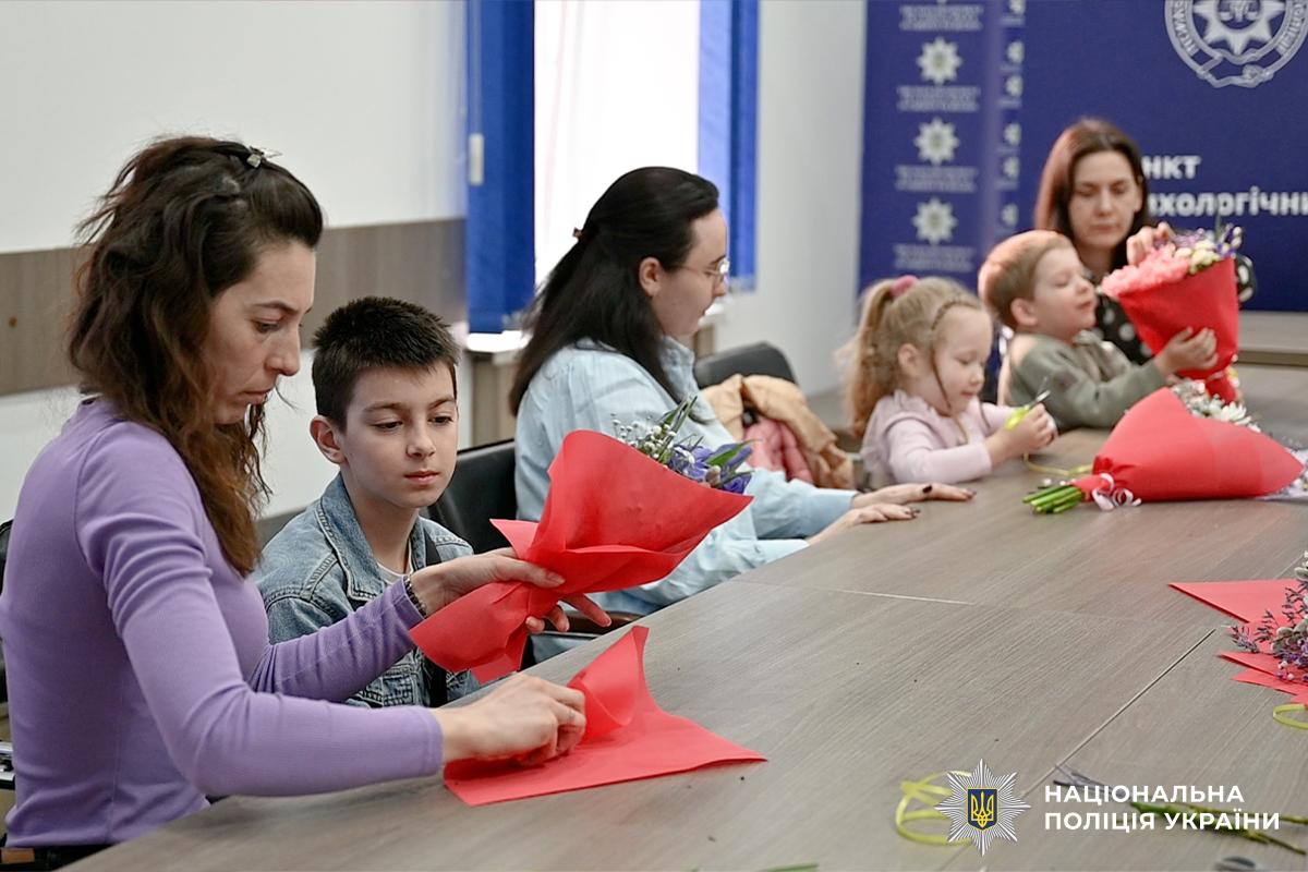 Захід організували психологи спільно із співробітниками соціального відділу Управління кадрового забезпечення ГУНП в Чернівецькій області. Дітки власноруч створили для своїх матерів приємні сюрпризи – барвисті букети з живих квітів. Майстер-клас став необхідним емоційним розвантаженням для наймолодших та дорослих учасників.