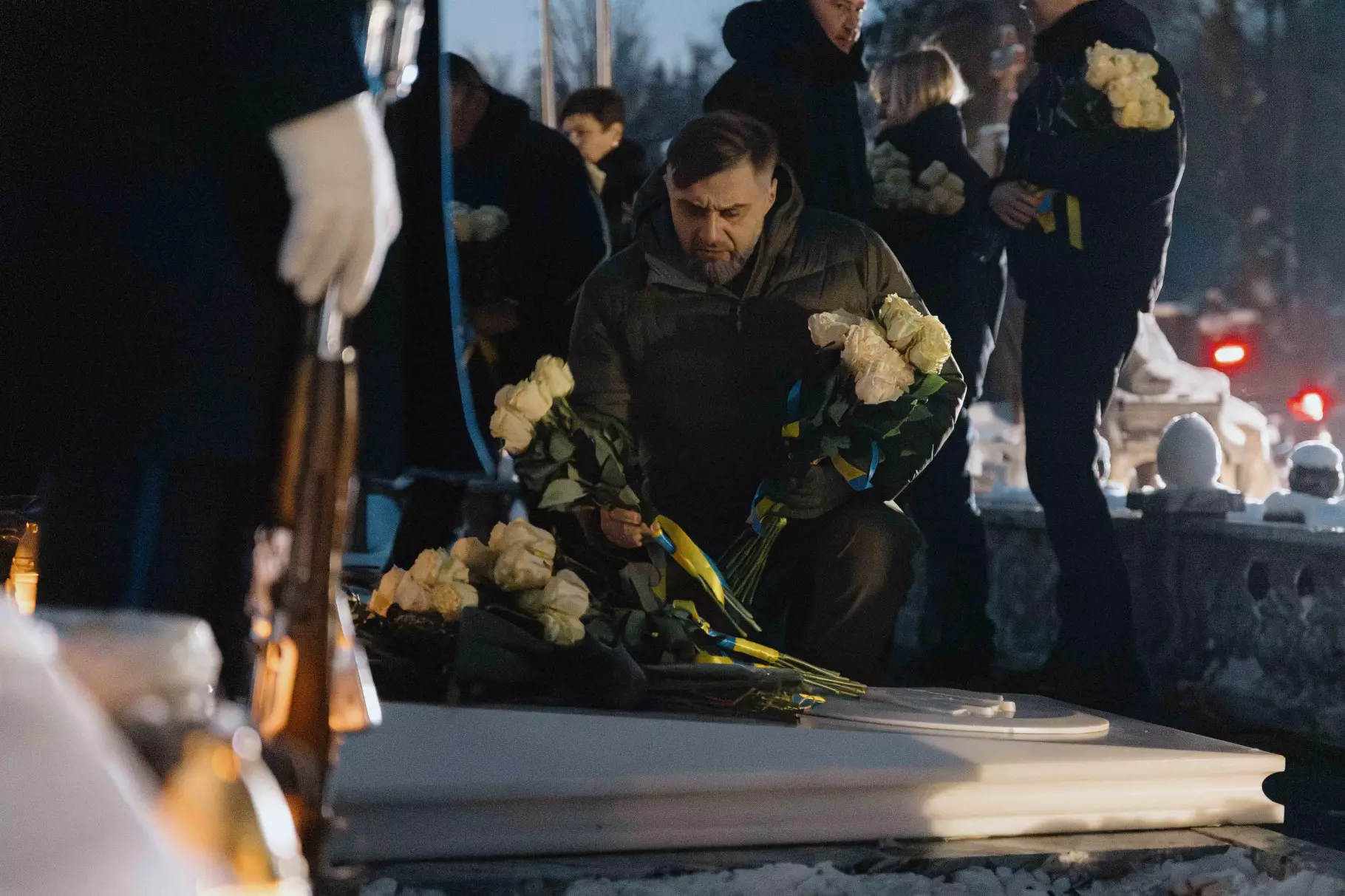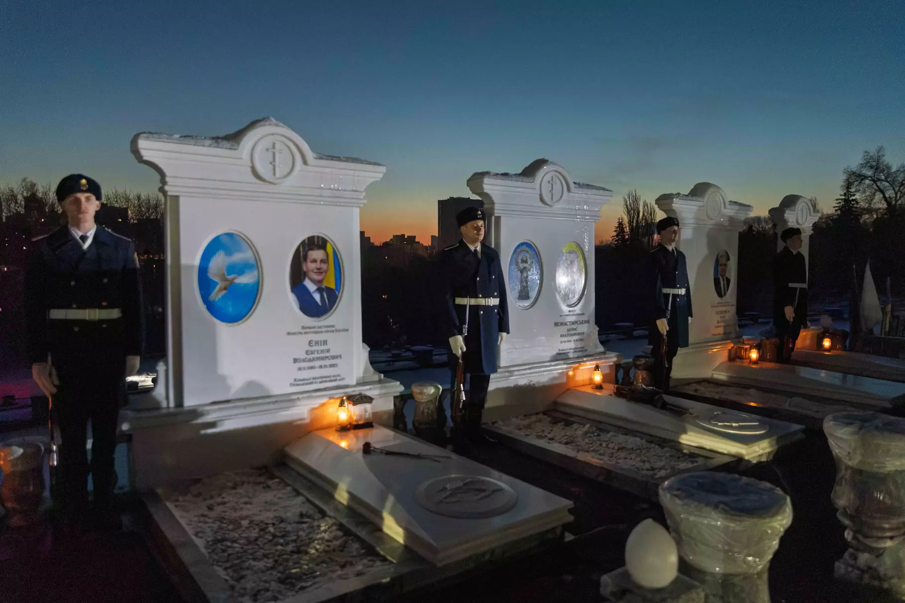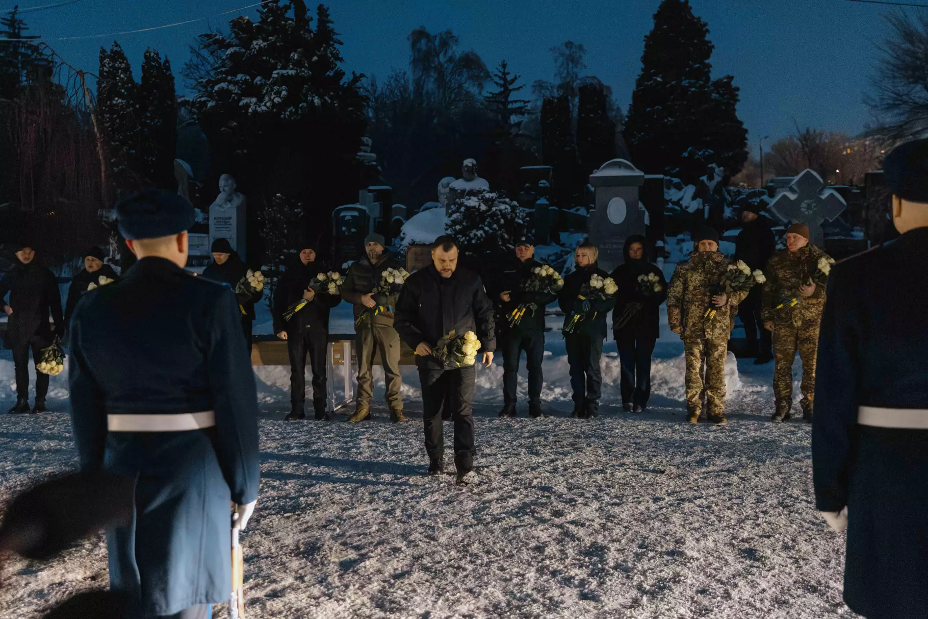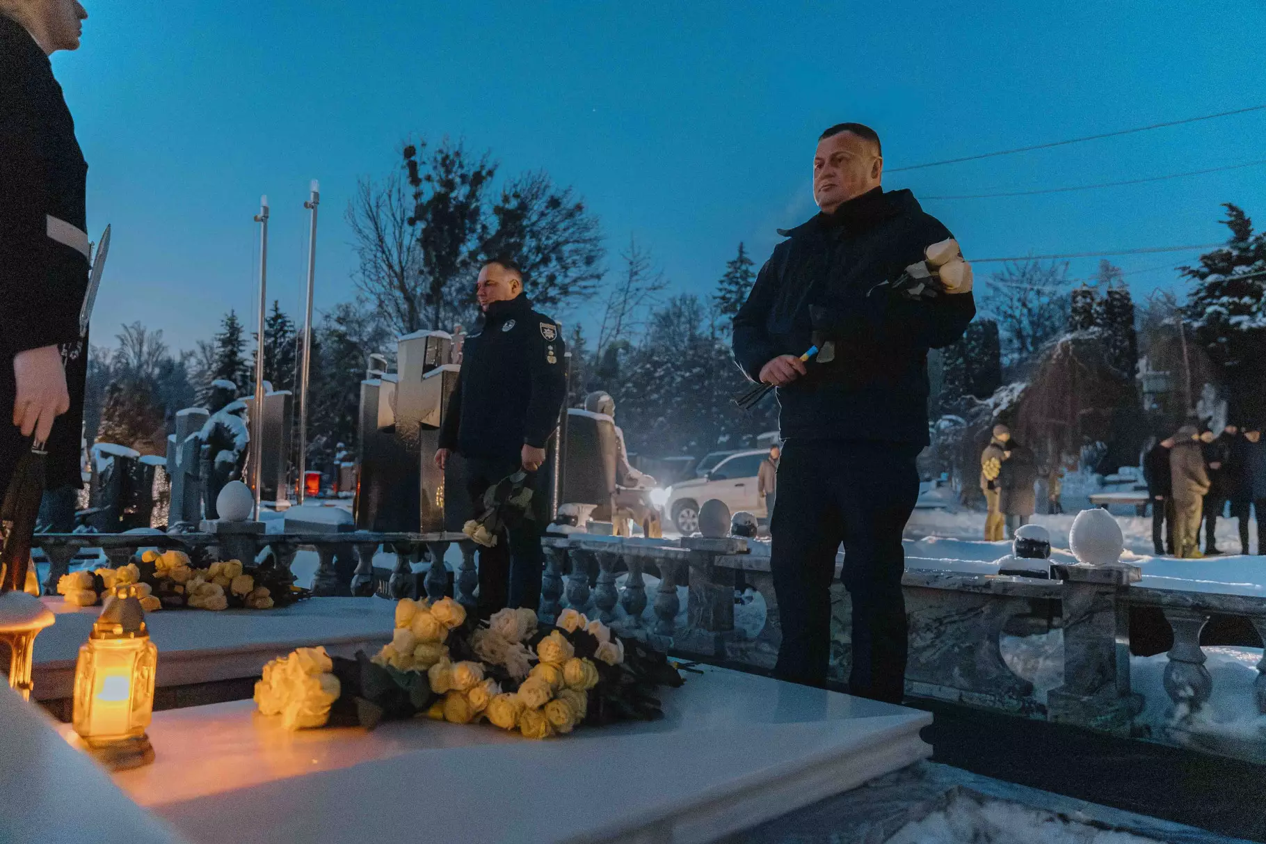 На Байковому кладовищі, де поховані керівники та працівники МВС, відбулася церемонія покладання квітів. Присутні вшанували пам’ять загиблих хвилиною мовчання.