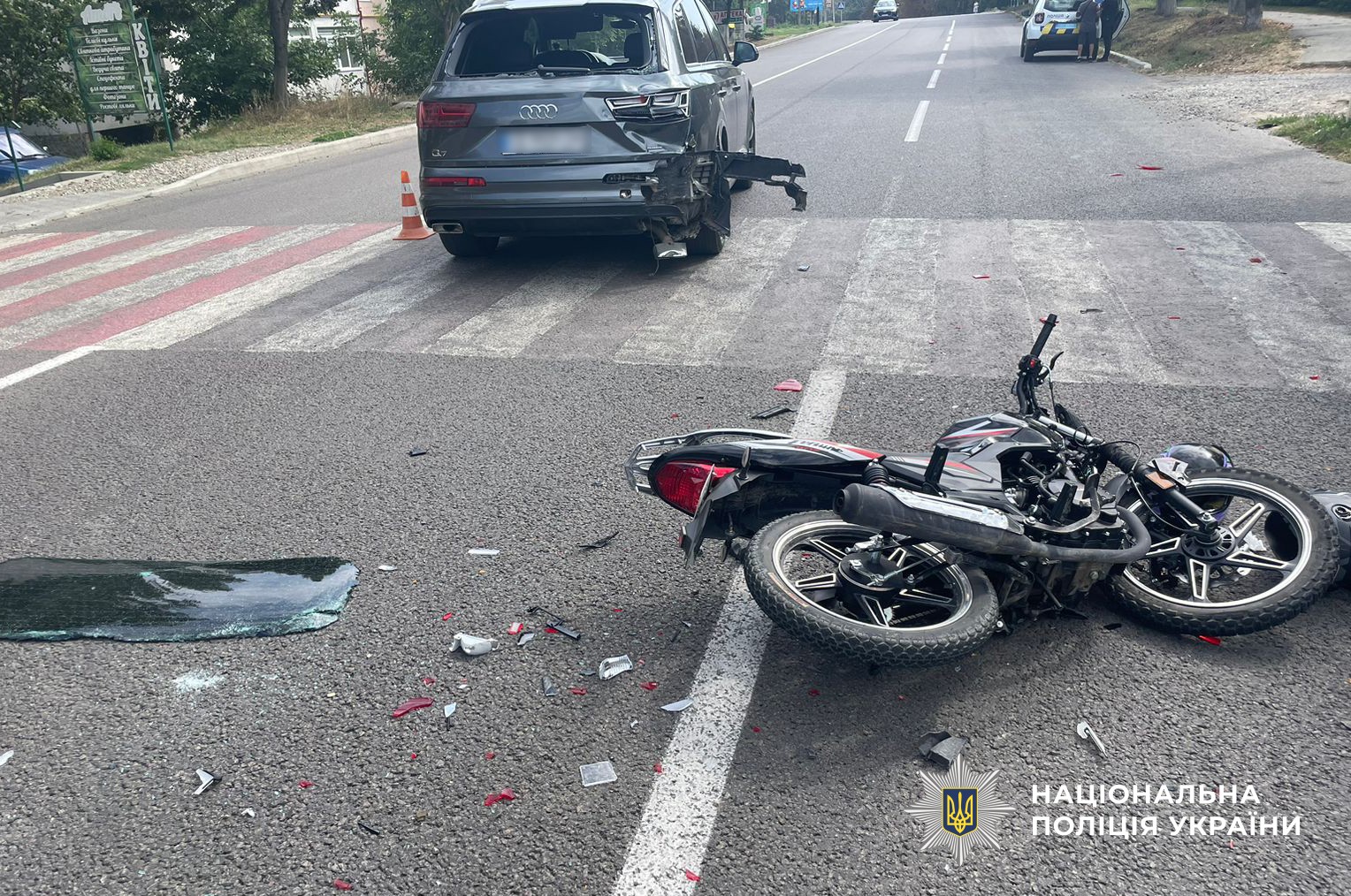 Аварія трапилась учора, 1 вересня, у місті Кіцмань. У результаті зіткнення мотоцикла з автівкою тілесні ушкодження отримали кермувальник двоколісного транспортного засобу та його неповнолітній пасажир. За цим фактом слідчі поліції розпочали кримінальне провадження.