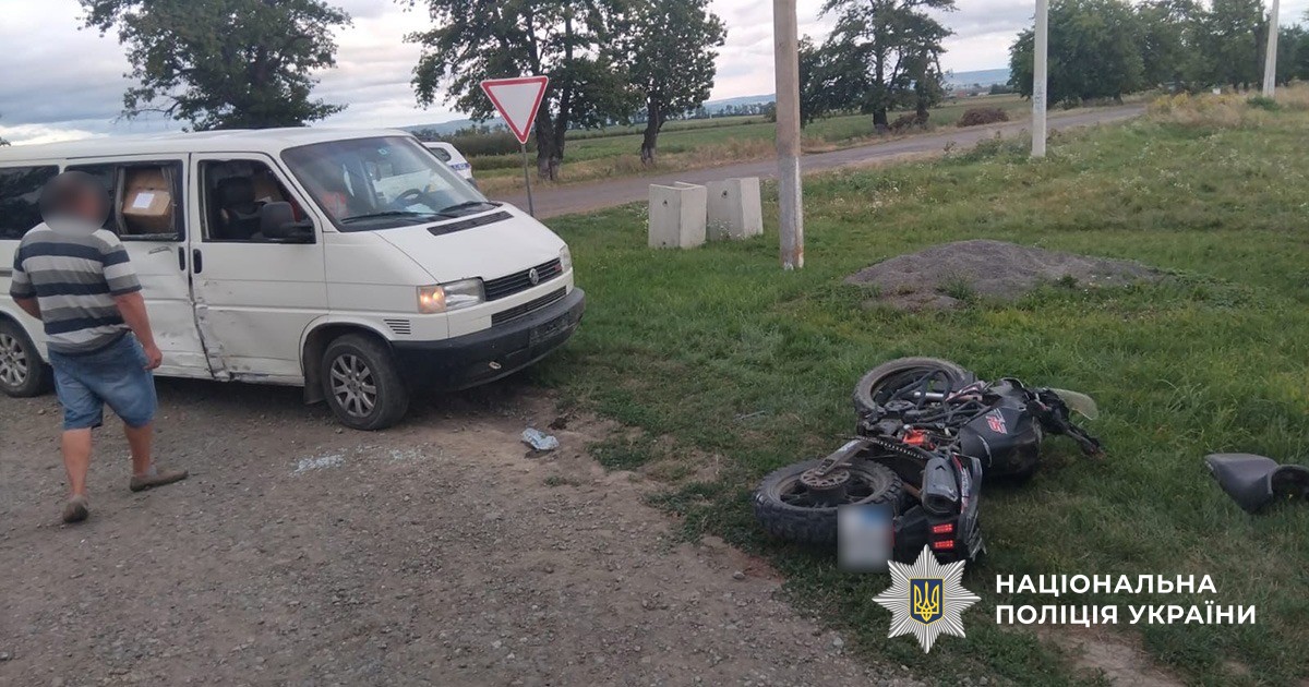 На місці події працювала слідчо-оперативна група відділення поліції №6 (м. Новоселиця ЧРУП. Попередньо правоохоронці зʼясували, що 49-річний житель с. Черленівка, керуючи автомобілем «Volkswagen Transporter», допустив зіткнення з мотоциклом «VDV TEKKEN 250», під керуванням 18-річного жителя с. Котелеве.
