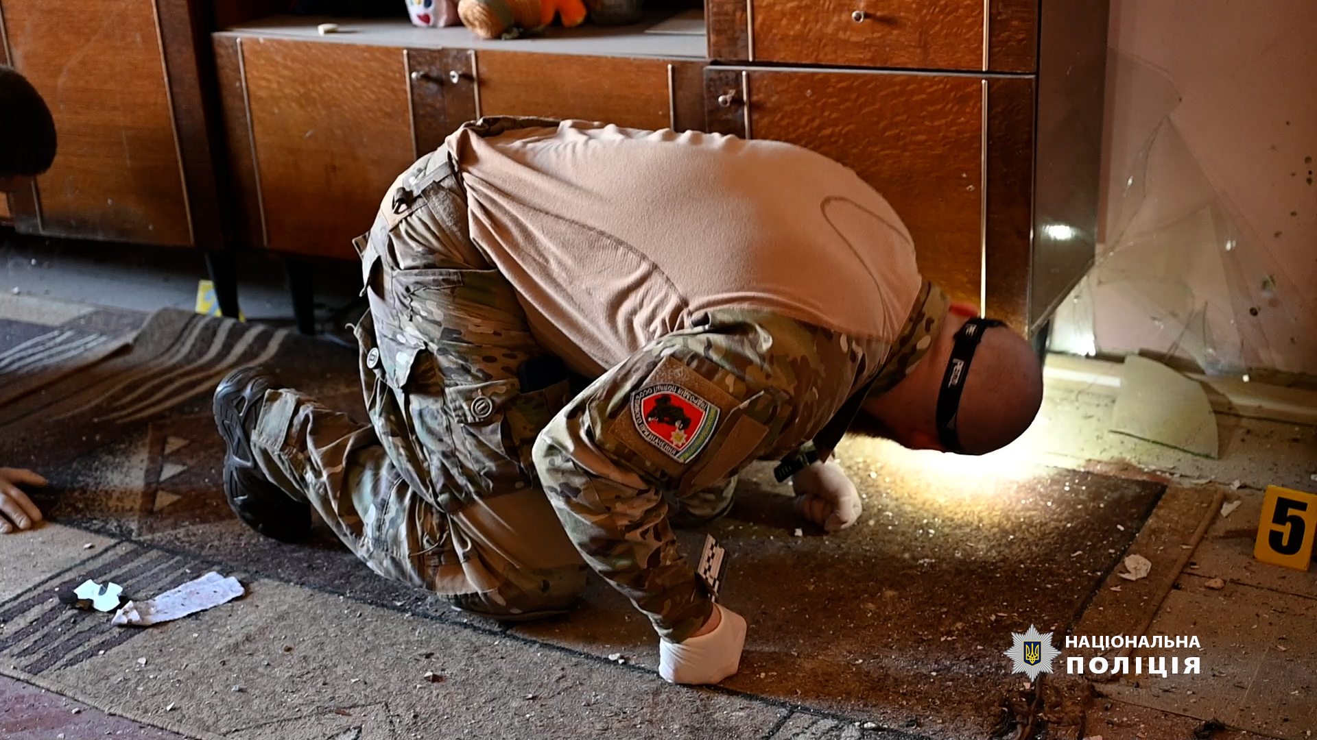 Унаслідок вибуху частково пошкоджено двері та підлогу квартири.