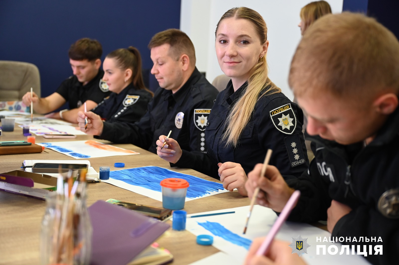 До участі долучилися також двоє психологинь Благодійного фонду у Чернівцях "Карітас", які в межах реалізації проєкту "Центр Життєстійкості Чернівецької громади" запропонували поліцейським виконати арт-терапевтичне завдання щодо управління стресом. Після практичного завдання фахівець із соціальної роботи Наталія Костинюк та психологиня Олена Захарченко обговорили з присутніми результати, спрямовані на підтримку ментального здоров’я поліцейських і є дуже дієвими.