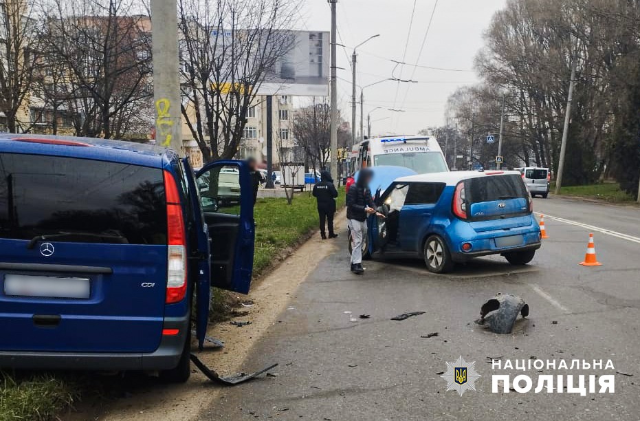 Учора до поліції надійшло повідомлення про дорожньо-транспортну пригоду з потерпілим у Чернівцях. Для встановлення всіх обставин та причин аварії на місці події працювали слідчо-оперативна група Чернівецького райуправління поліції та патрульні поліцейські. Правоохоронці попередньо з’ясували, що 21-річний чернівчанин, керуючи автомобілем «Kia Soul», здійснюючи маневр перестроювання, зіткнувся з авто «Mercedes-Benz Vito», під керуванням 69-річного жителя села Чагор.