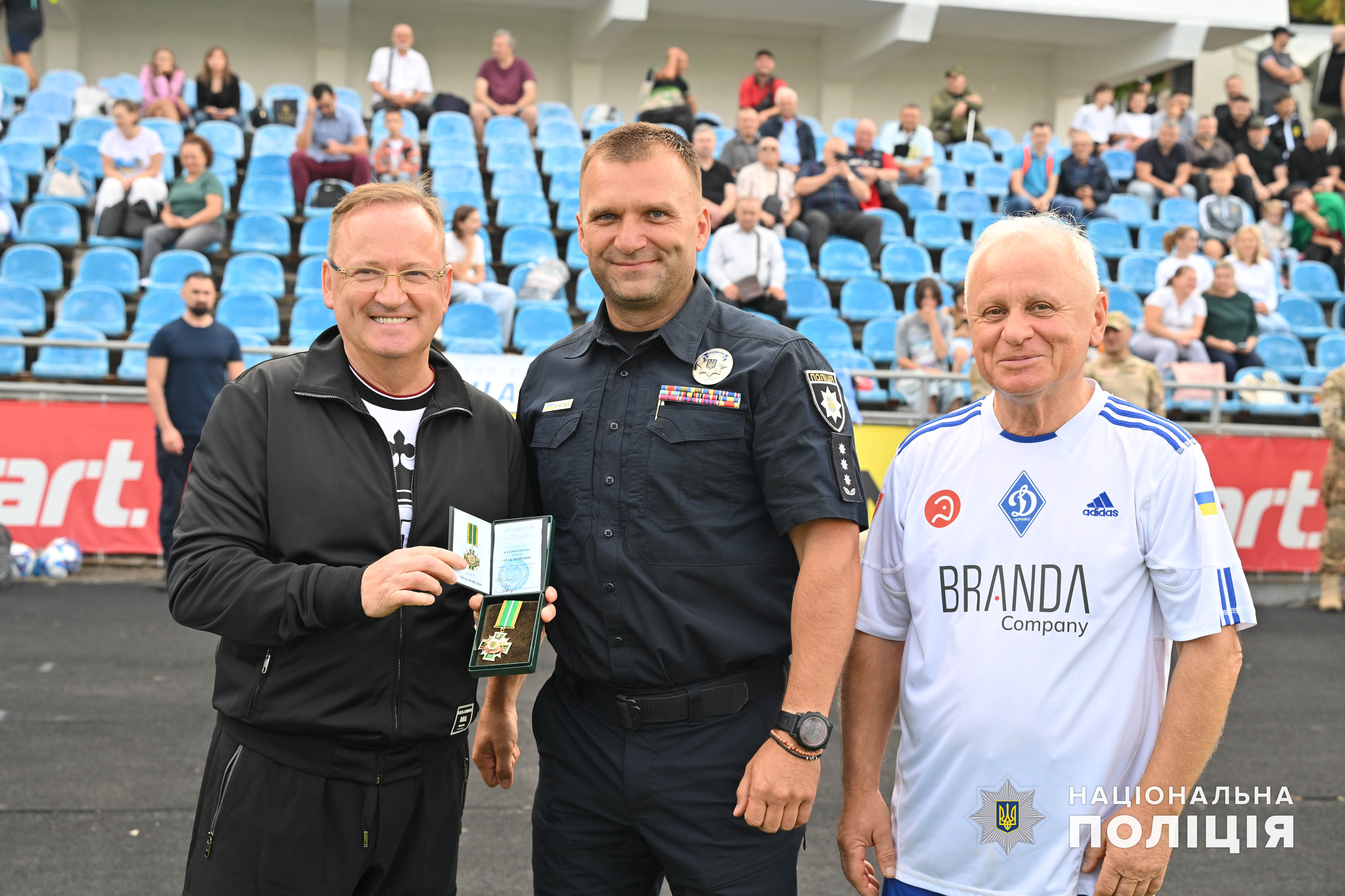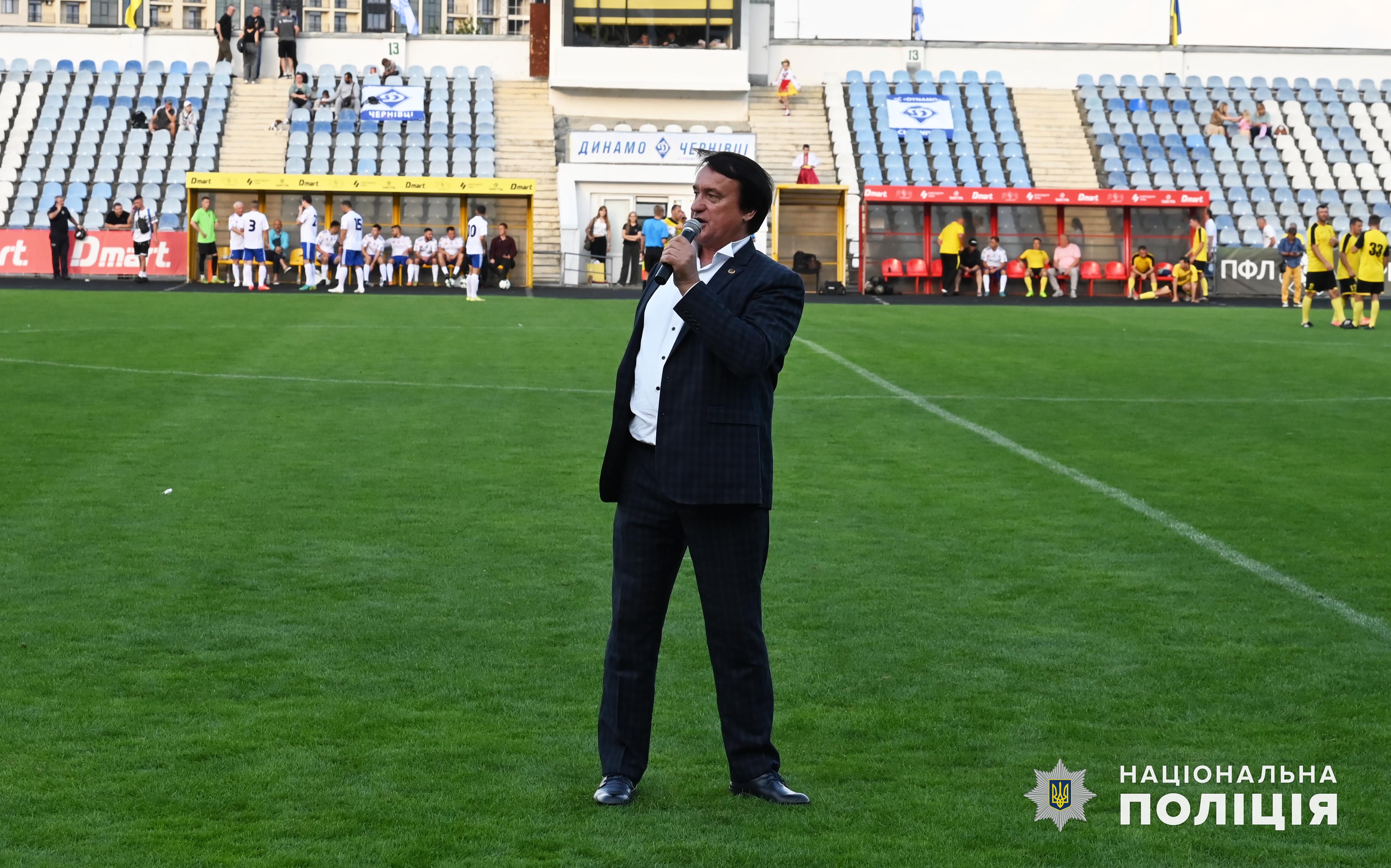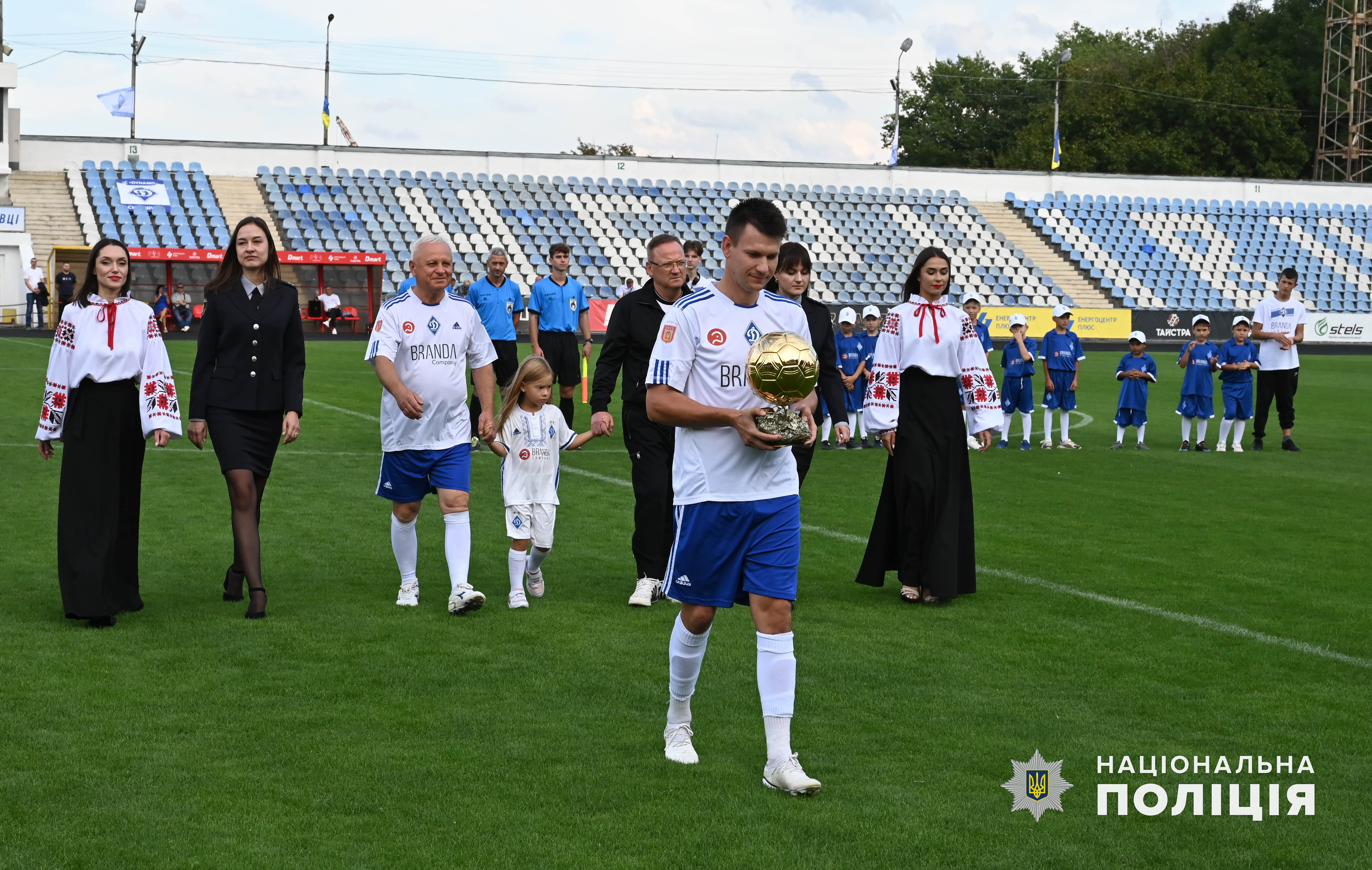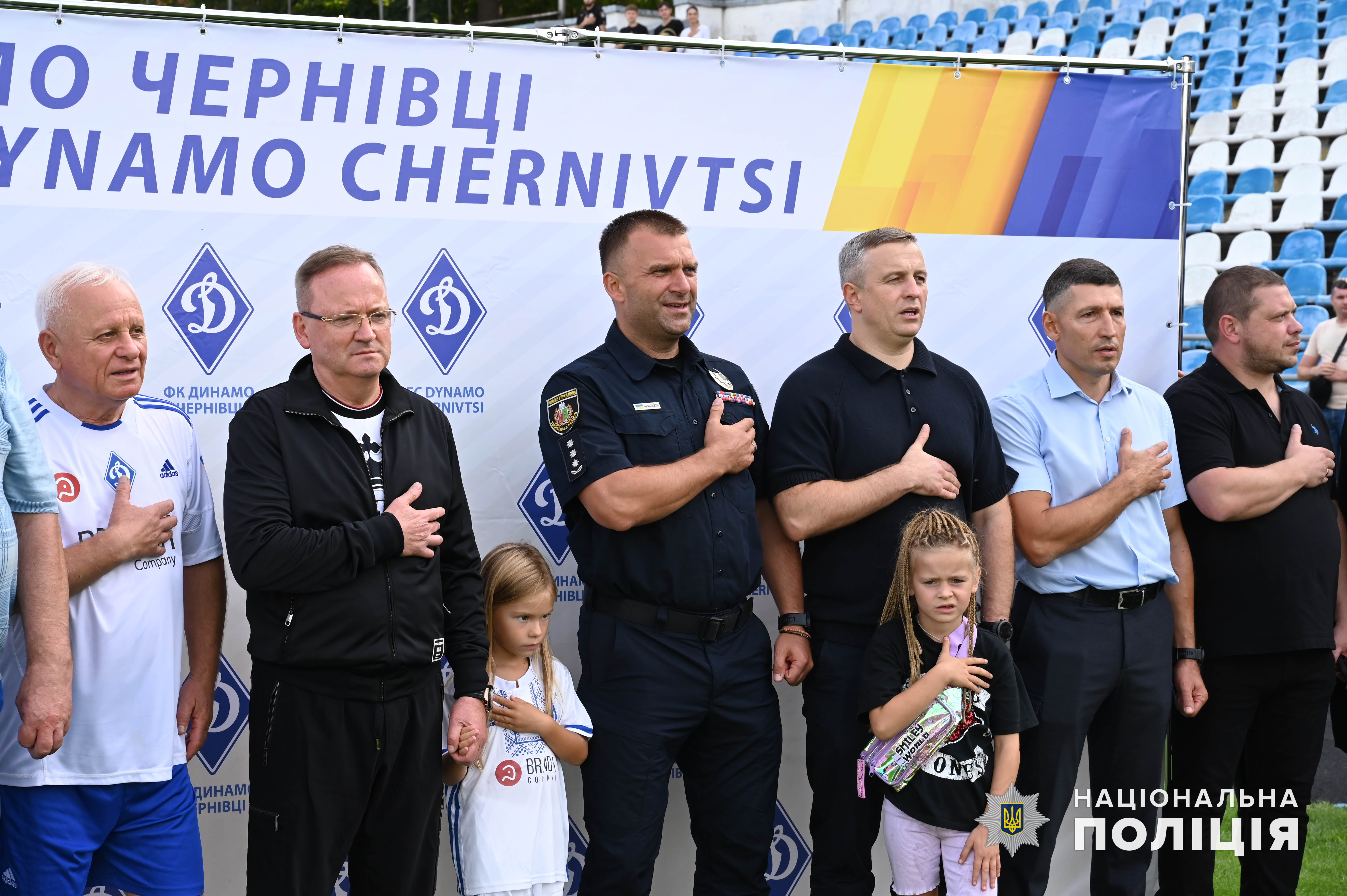 Після цього на центральну спортивну арену Чернівців вийшли учасники матчу та наймолодші буковинські динамівці у супроводі капітана команди «Динамо» Чернівці, начальника ГУНП в Чернівецькій області Віктора Нечитайла, який разом з колегами ініціював створення ДЮФШ.