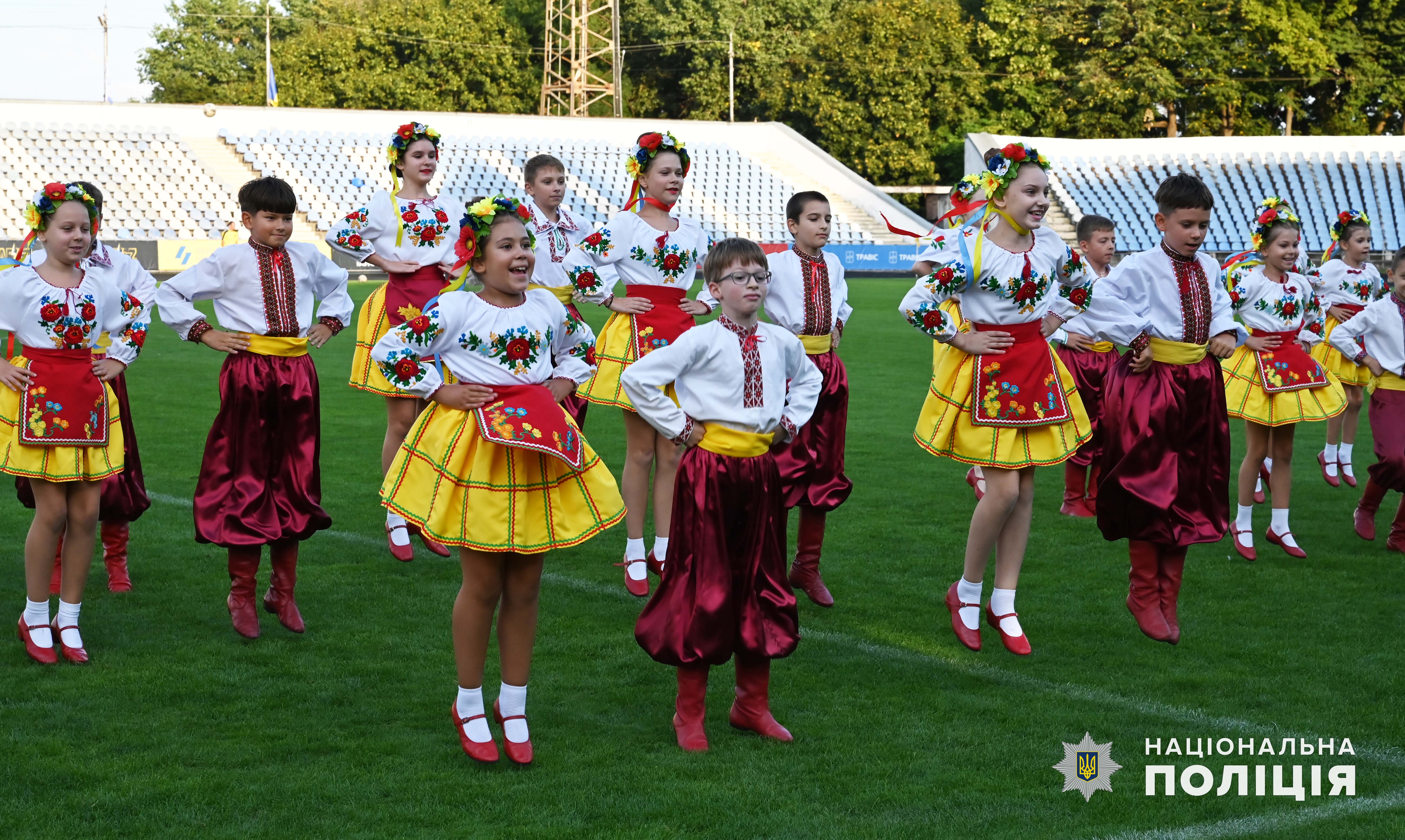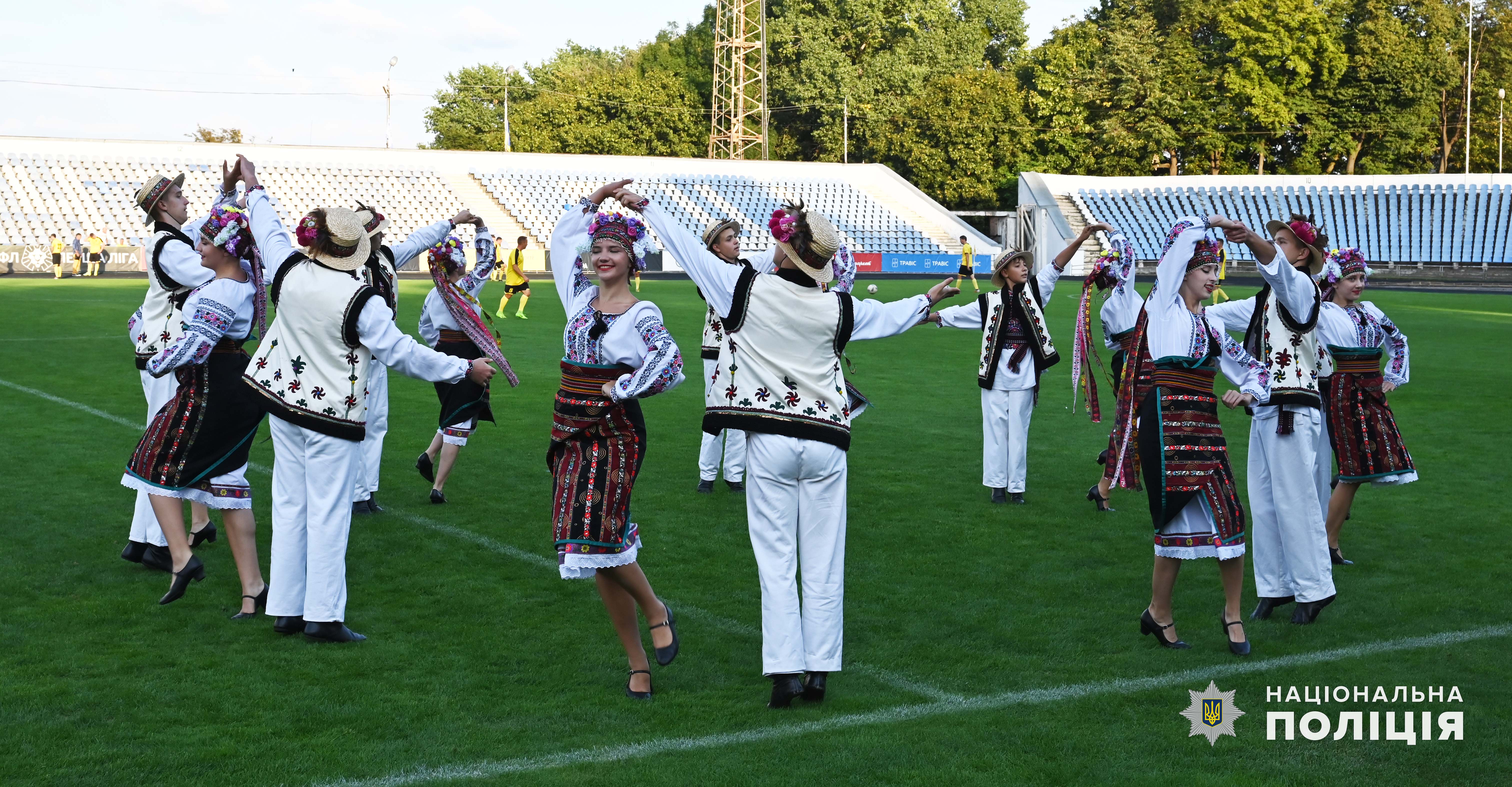 У перерві футбольного матчу показові виступи продемонстрували вихованці народно-танцювального колективу «НеоГалактика» та спортивної школи карате «Лідер».