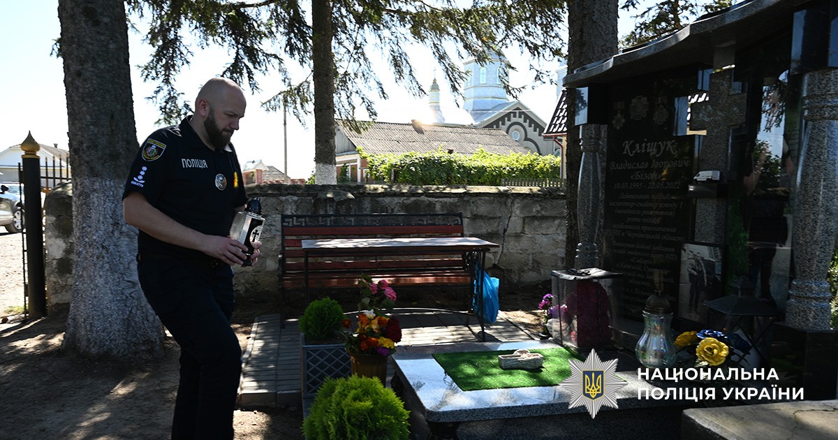 Поліцейські Чернівецької області відвідали могили колег, які загинули при виконанні службових обов’язків та поклали квіти і лампадки.
